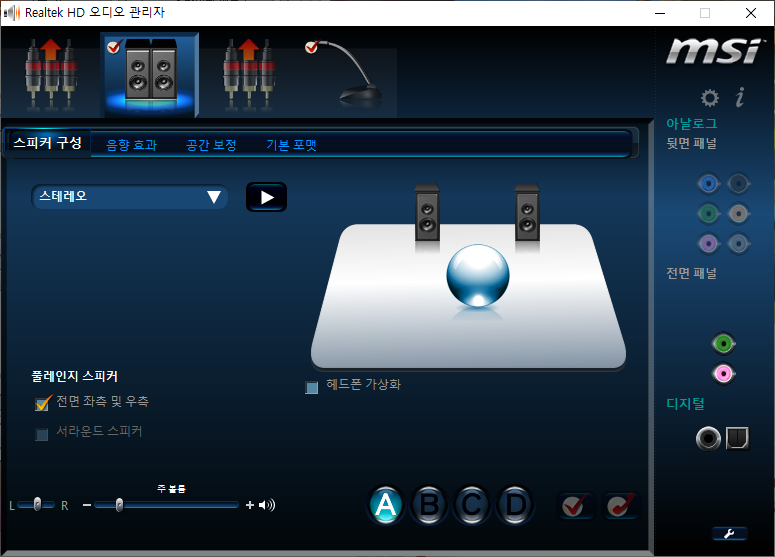 Realtek Audio Console 설정하는 방법은 한 군데에서 모두 설정이 됩니다