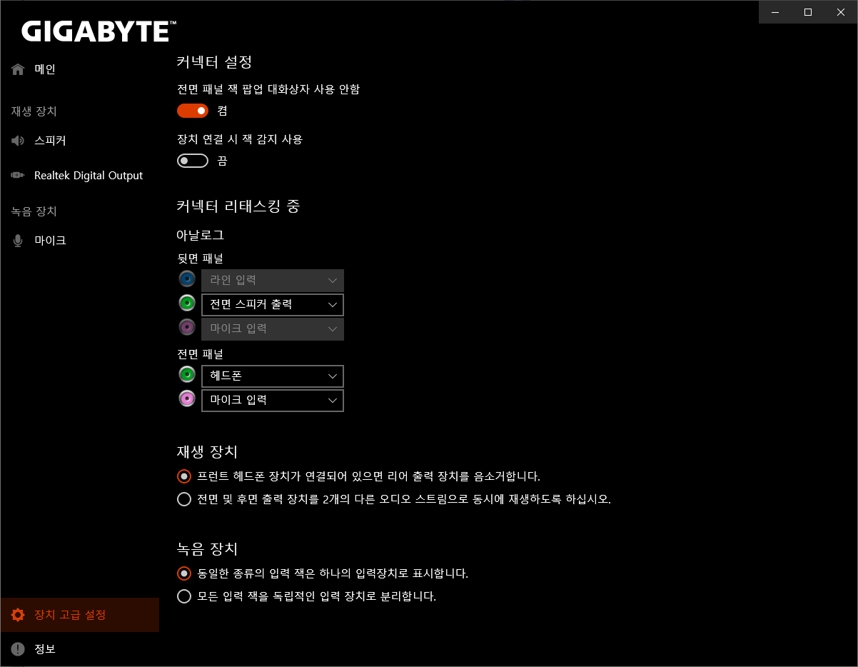 1. Realtek HD 오디오 관리자(~2019 상반기:Win 10)