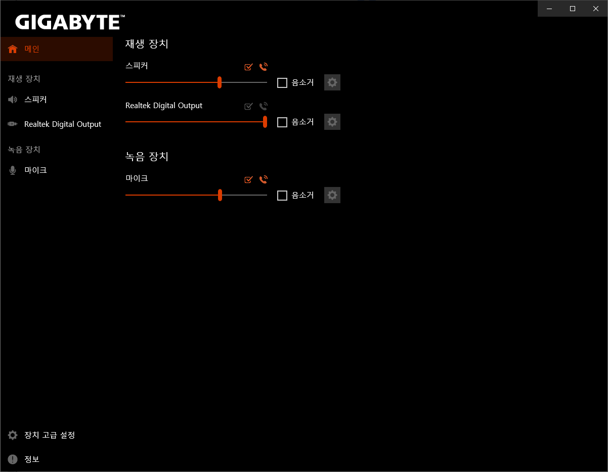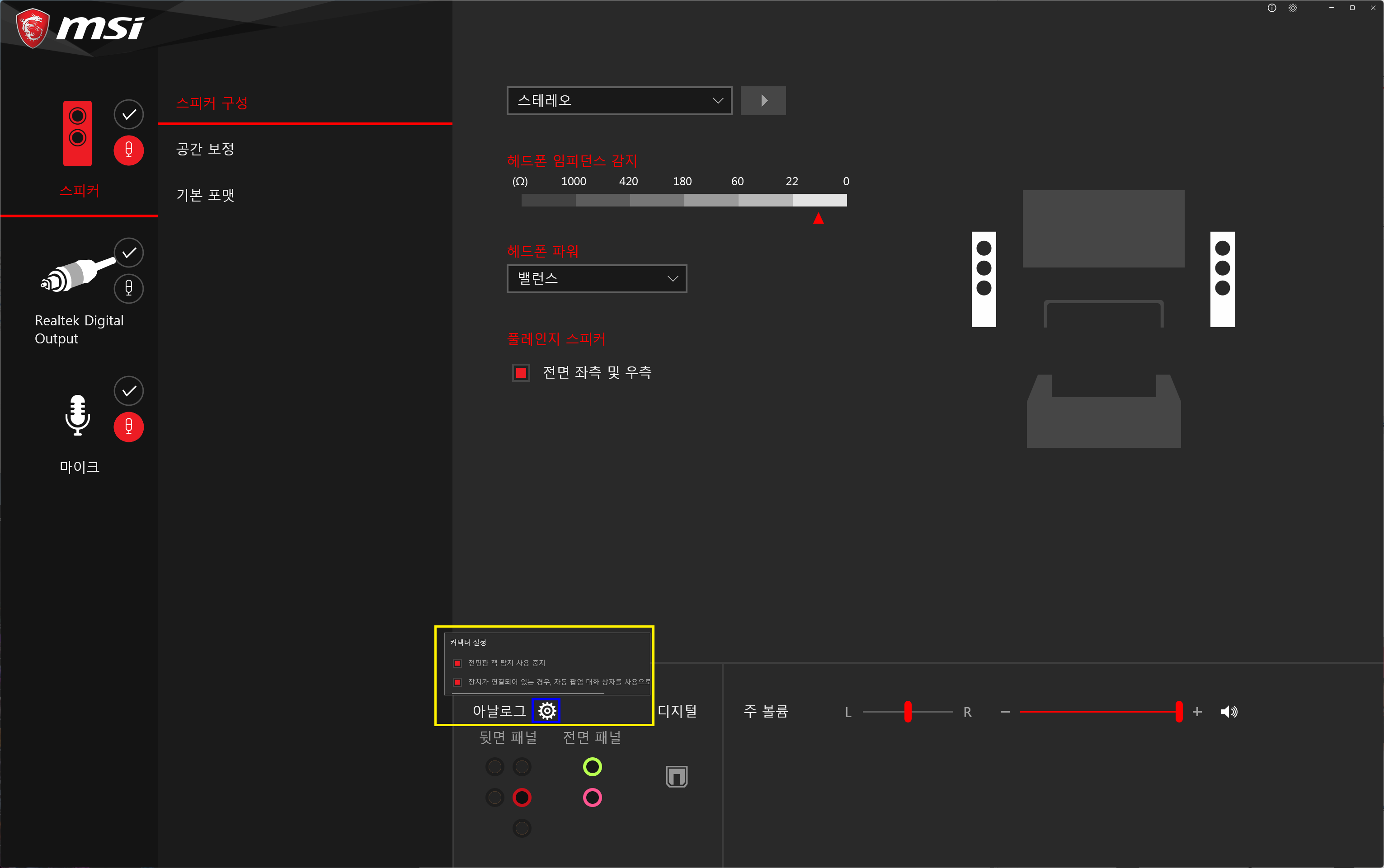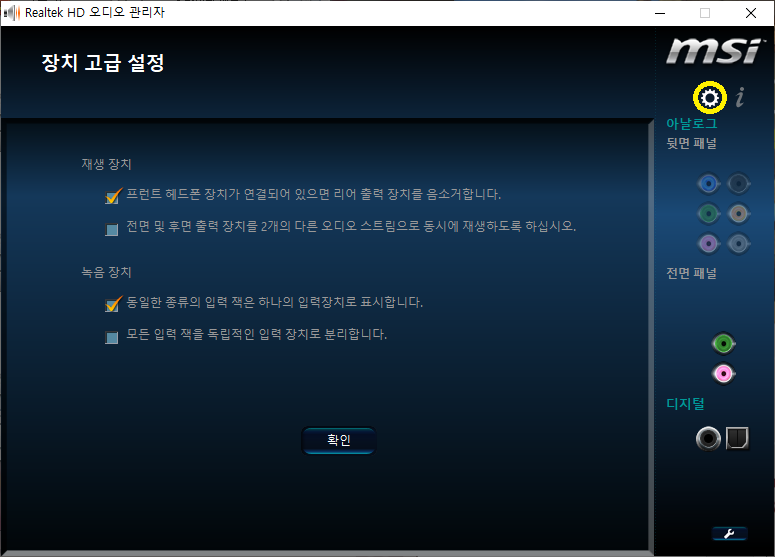Realtek Audio Console 아이콘을 눌러서 실행하면 아래와 같은 화면이 나오고