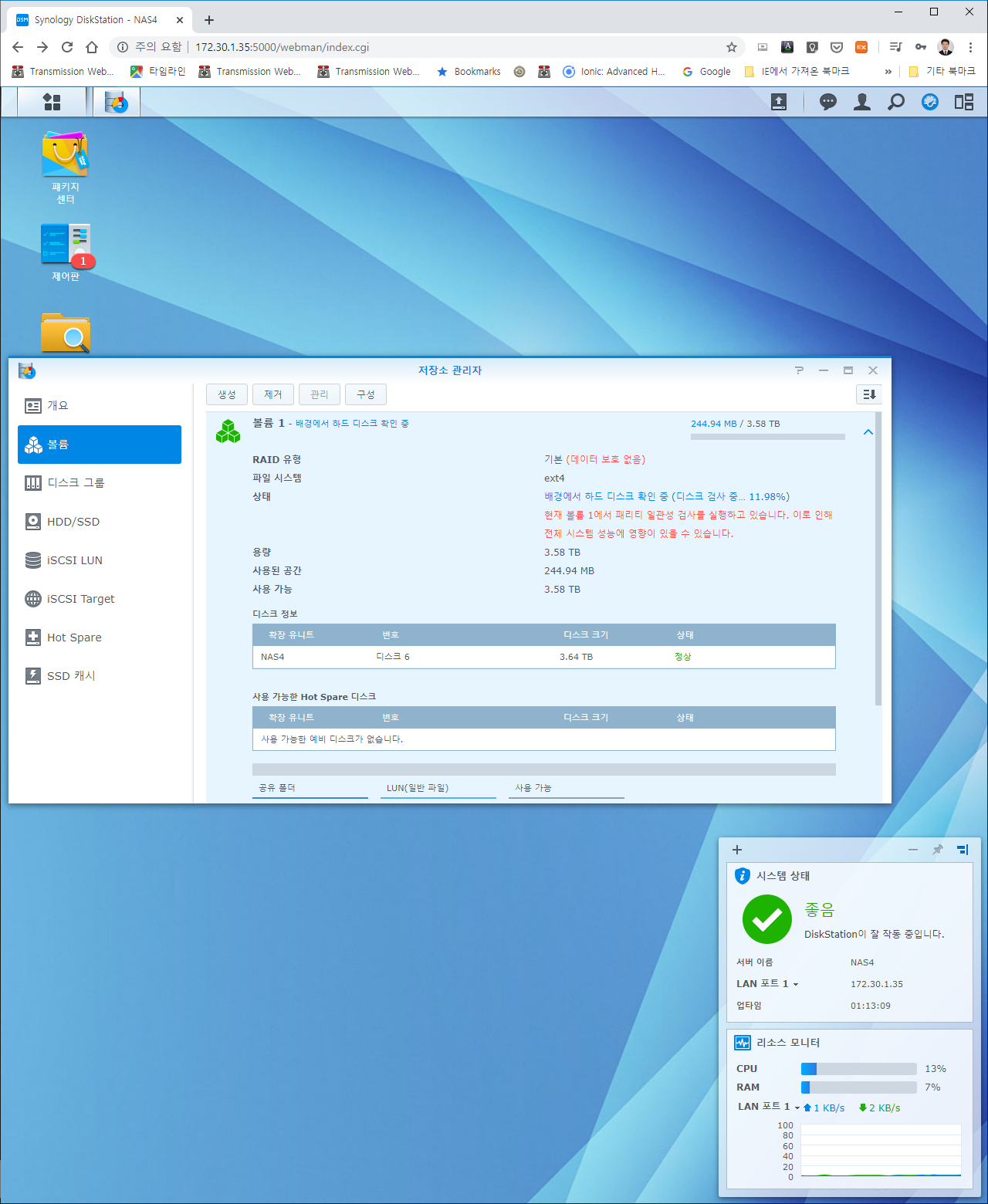 짜잔~ 최신 v6.2.2 로 동작하는 헤놀로지 입니다