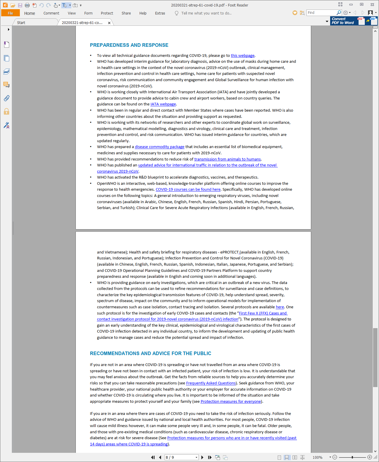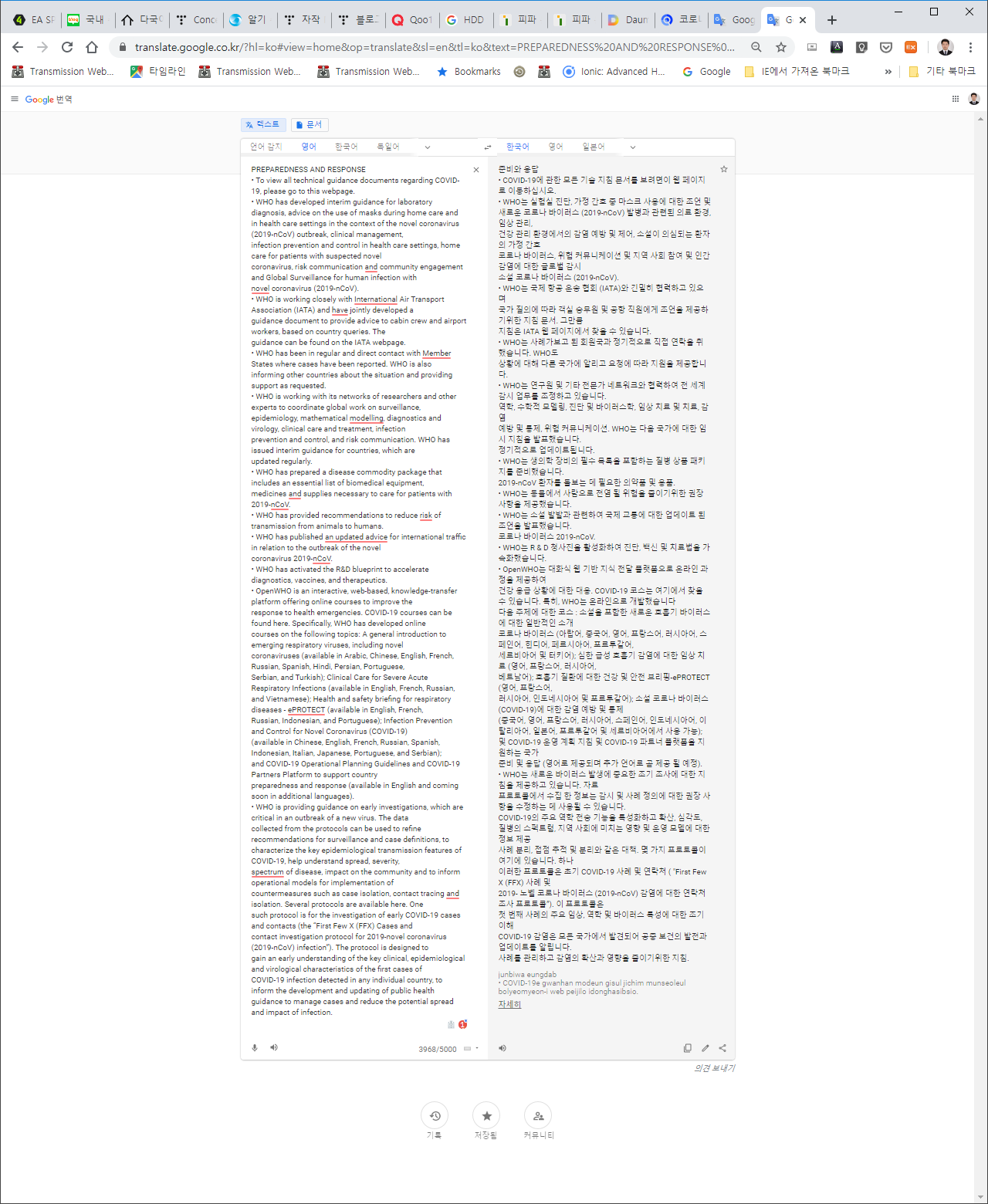 예제로 3/21 WHO 코로나 바이러스 보고서를 빠르게 번역해 봅니다