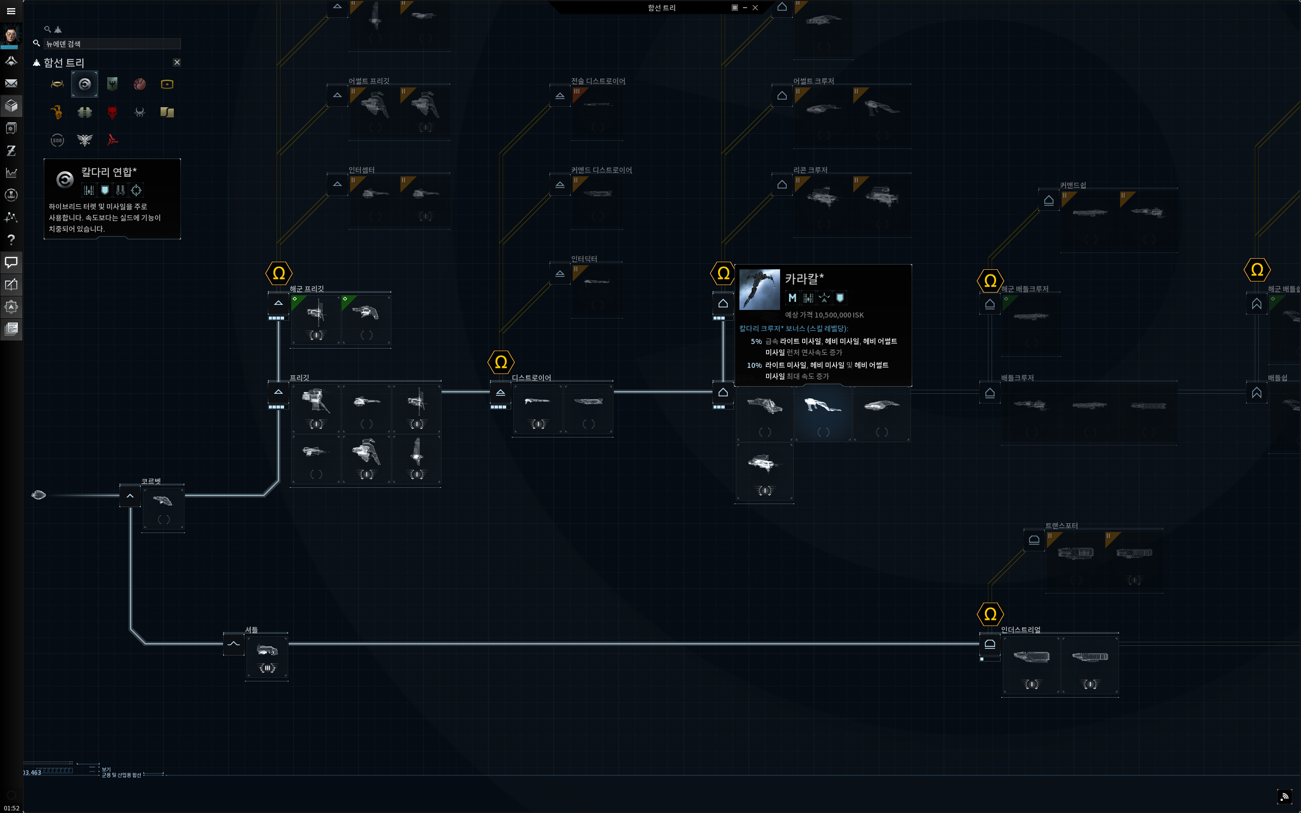 왼쪽상단의 세줄메뉴(네오콤 메뉴) > 함선 > 함선트리 를 보면
