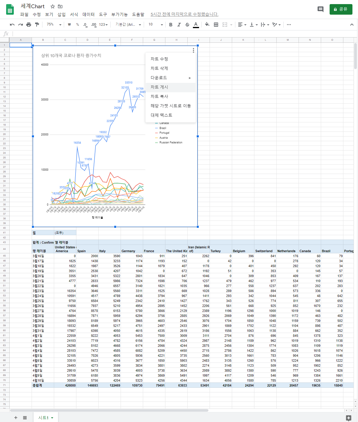 Google spreasheet 에 세계 데이터를 입력해 보니