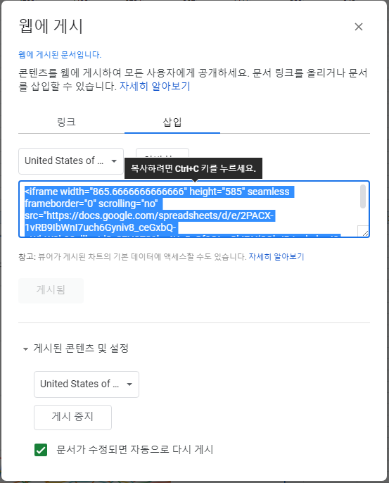 '삽입'을 눌러서 HTML 코드를 복사합니다