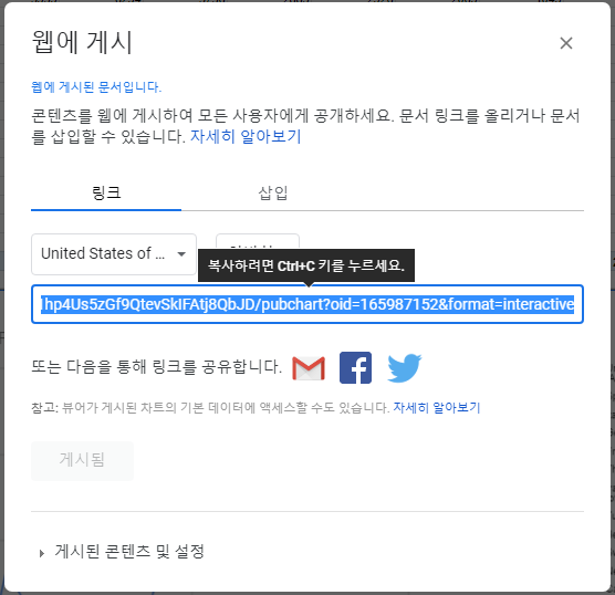 오른쪽 위의 선택 측정항목 아이콘을 클릭하면 그래프에서 제외할 국가도 선택할 수 있고
