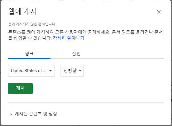 '링크'가 선택된 상태에서 게시를 누르면