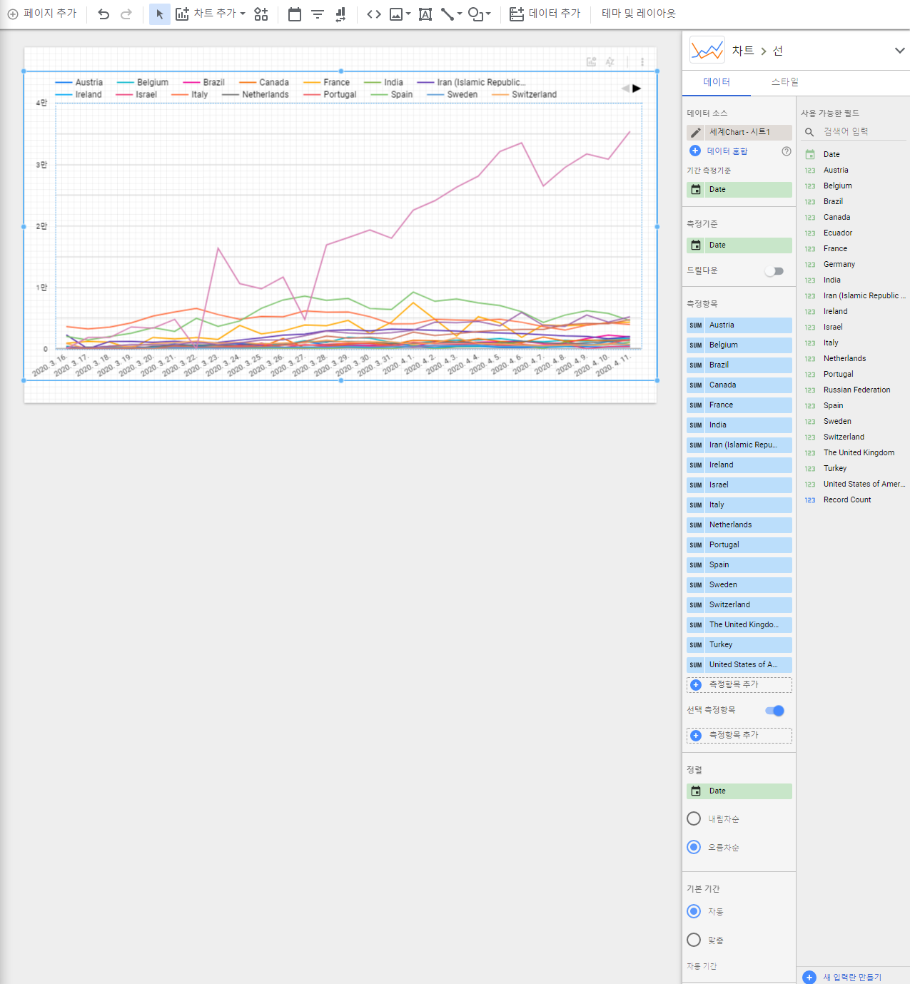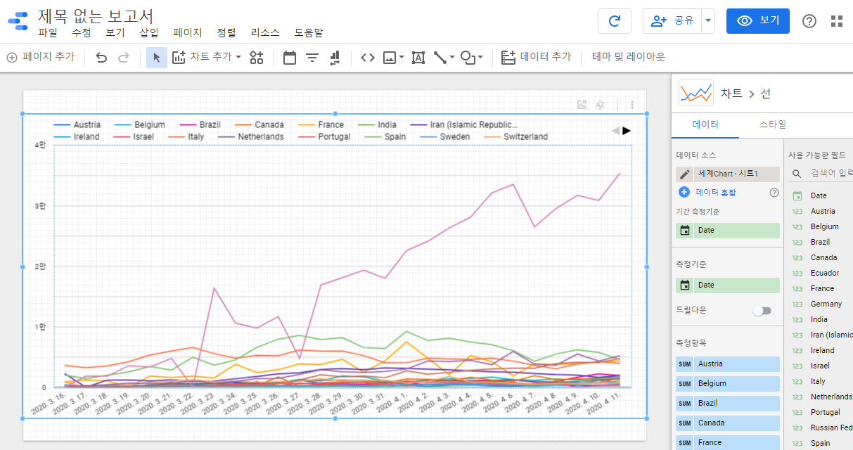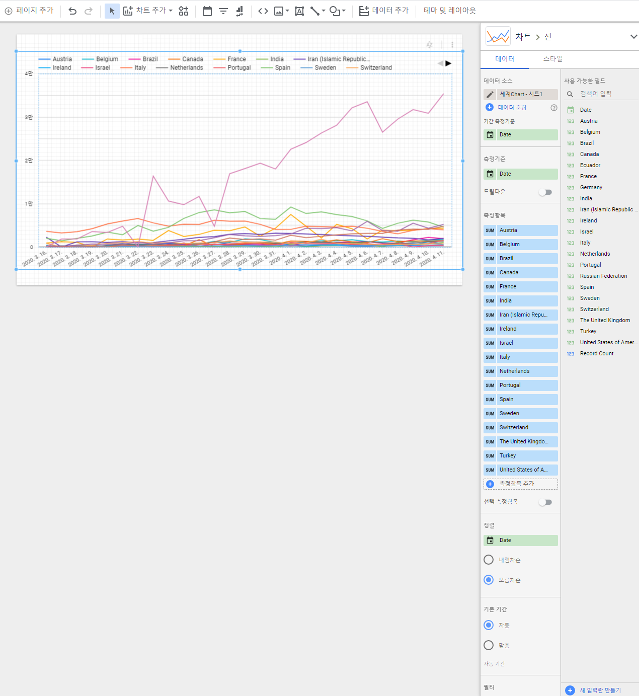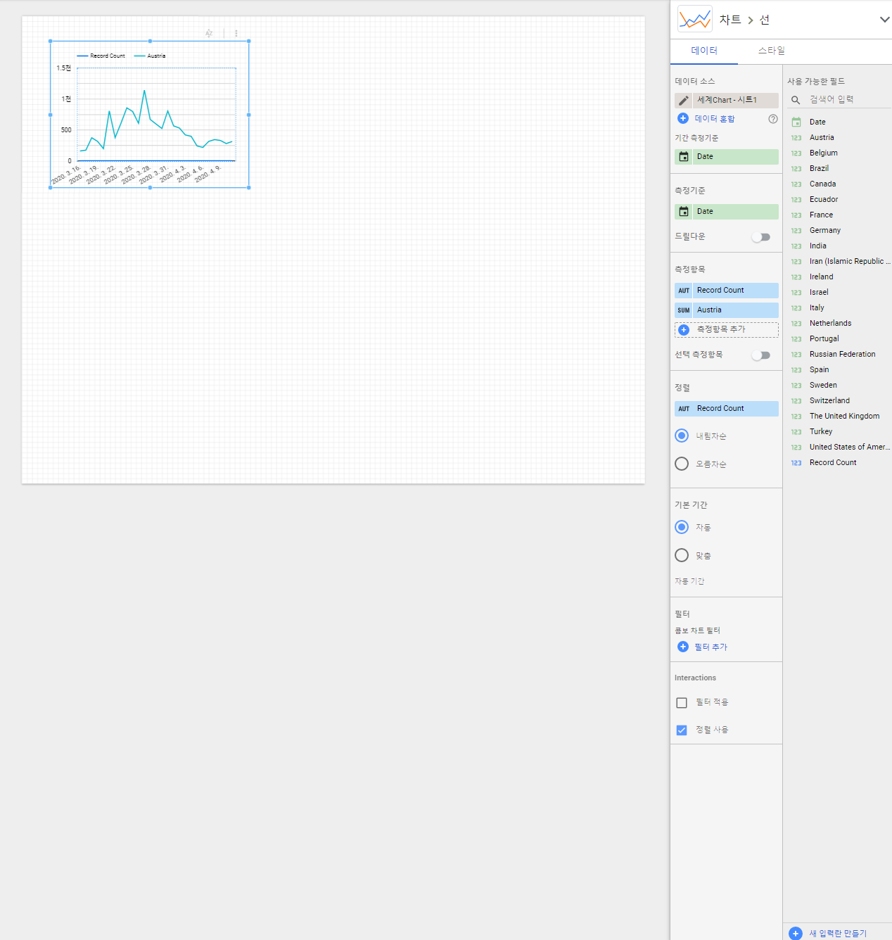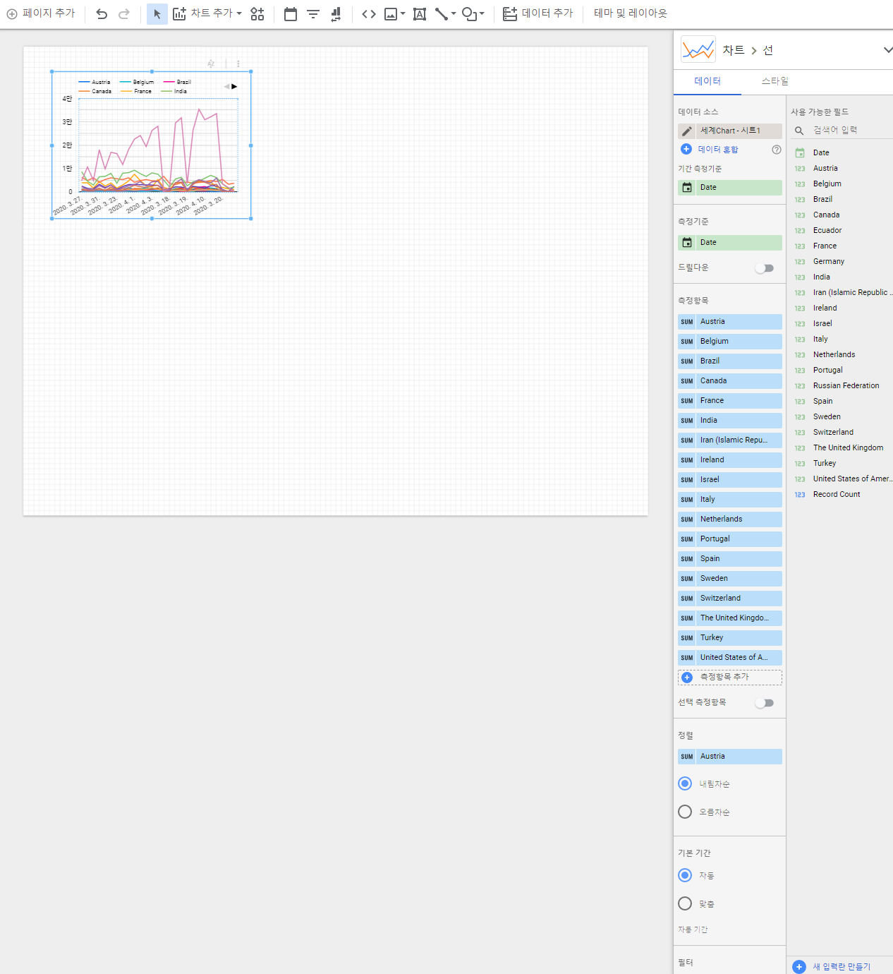 오스트리아를 끌어서 넣으니 그래프가 나타납니다