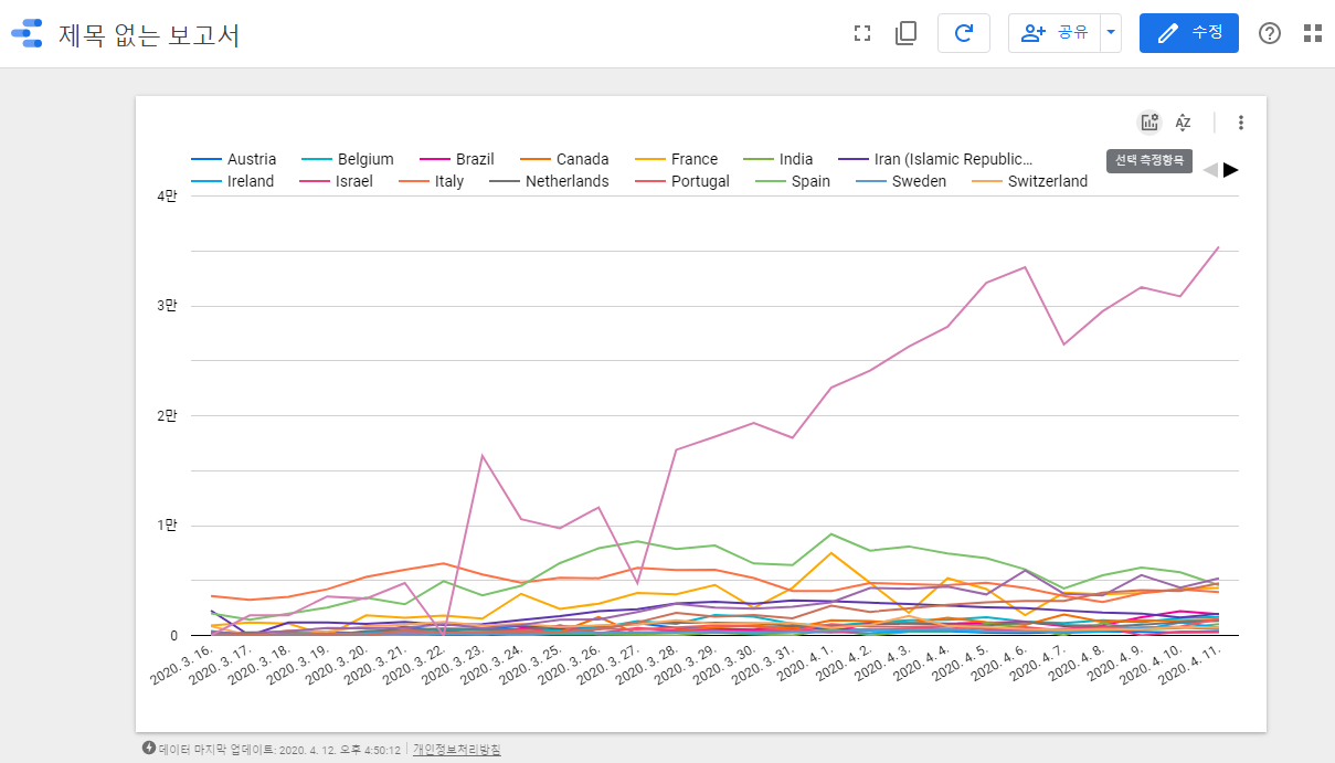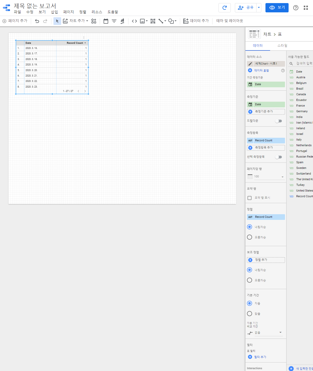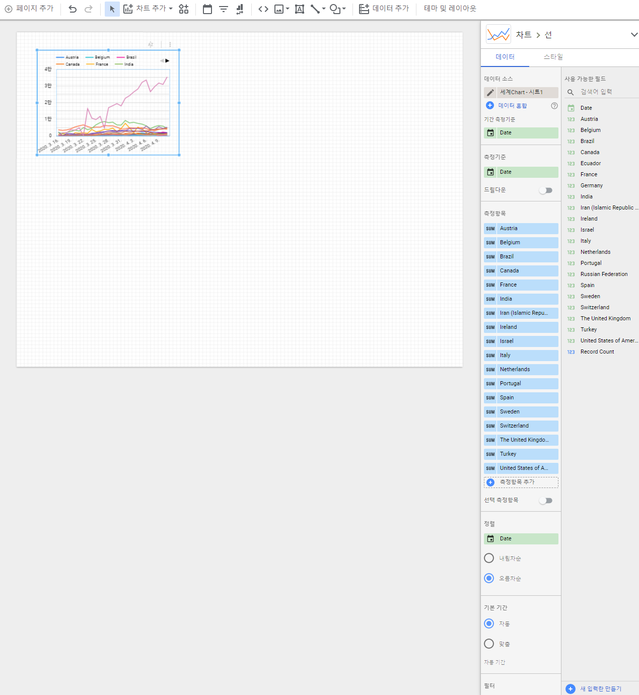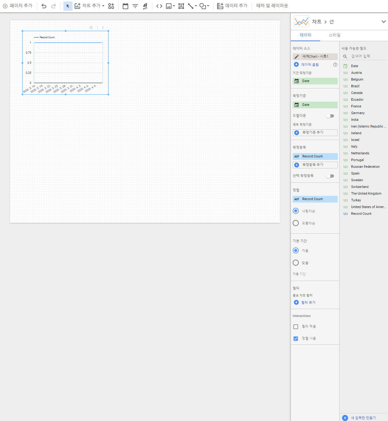 오스트리아를 끌어서 넣으니 그래프가 나타납니다