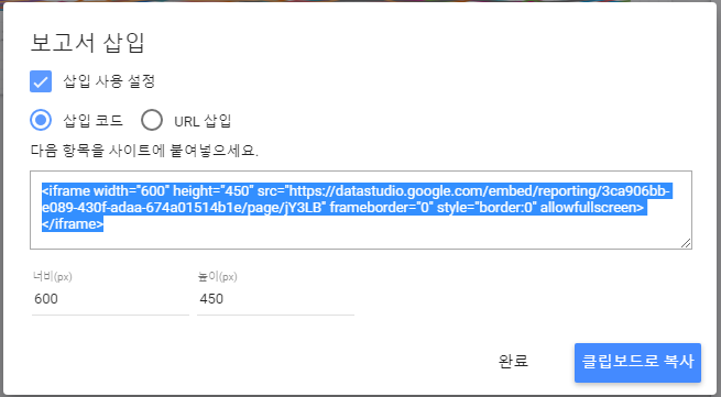 하단은 유튜브의 하단메뉴 같은 Google Data Studio 메뉴가 나타나므로