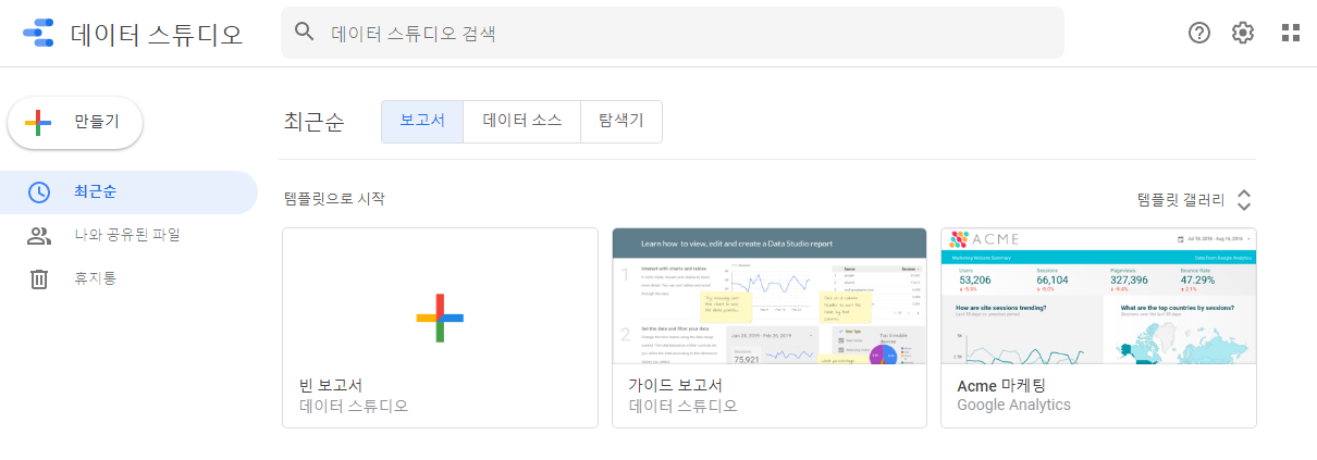 우선 아래의 Google Data Studio 사이트에 접속합니다