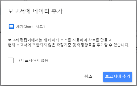 Google Data Studio 에서 보고서에 데이터 추가를 수행해 주세요