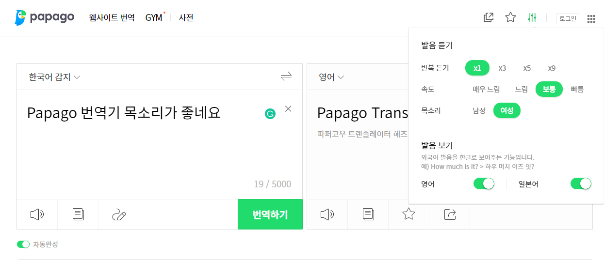 한국어는 남성 목소리만 나오네요