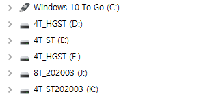 SATA 포트를 절약하기 위해 외장 USB SSD에 Windows To Go 로 설치한 것과