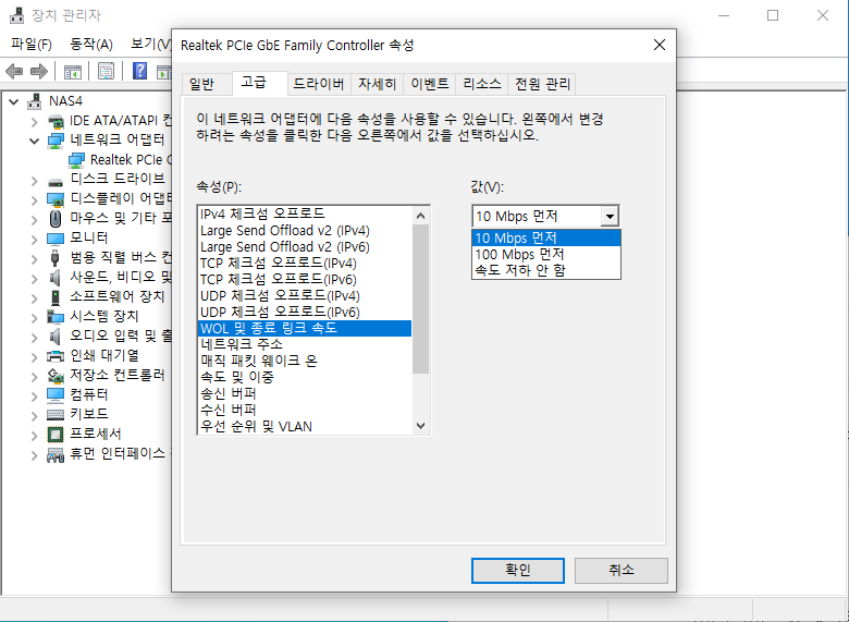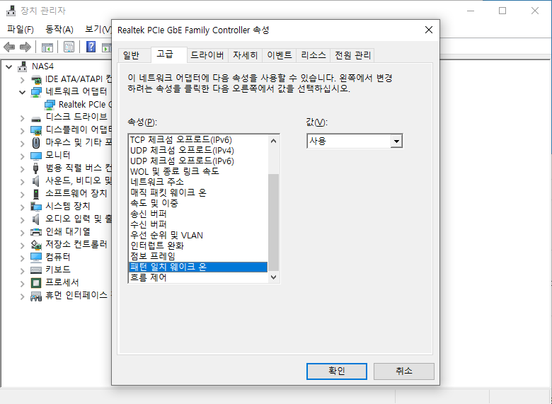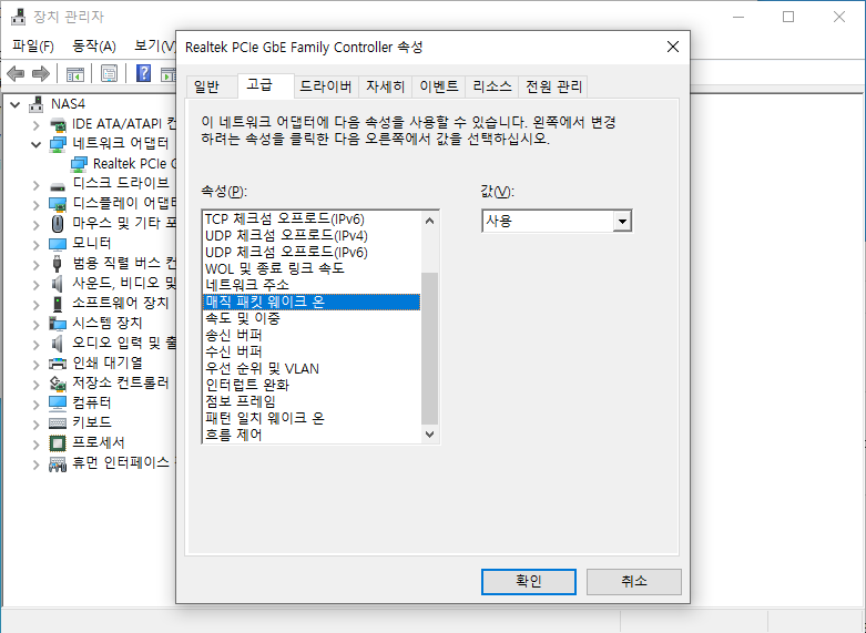 우선 Wake on LAN 을 설정합니다