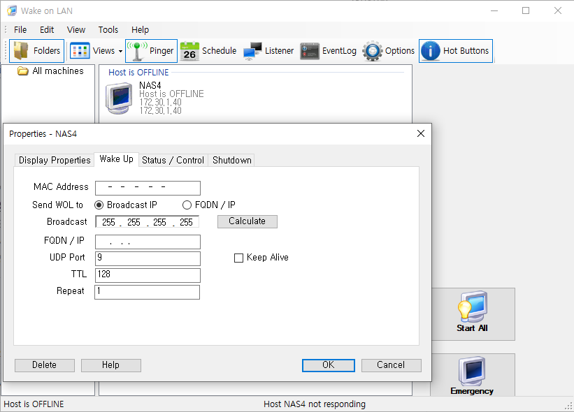 Wake on LAN 신호를 보내서 NAS 를 켜고