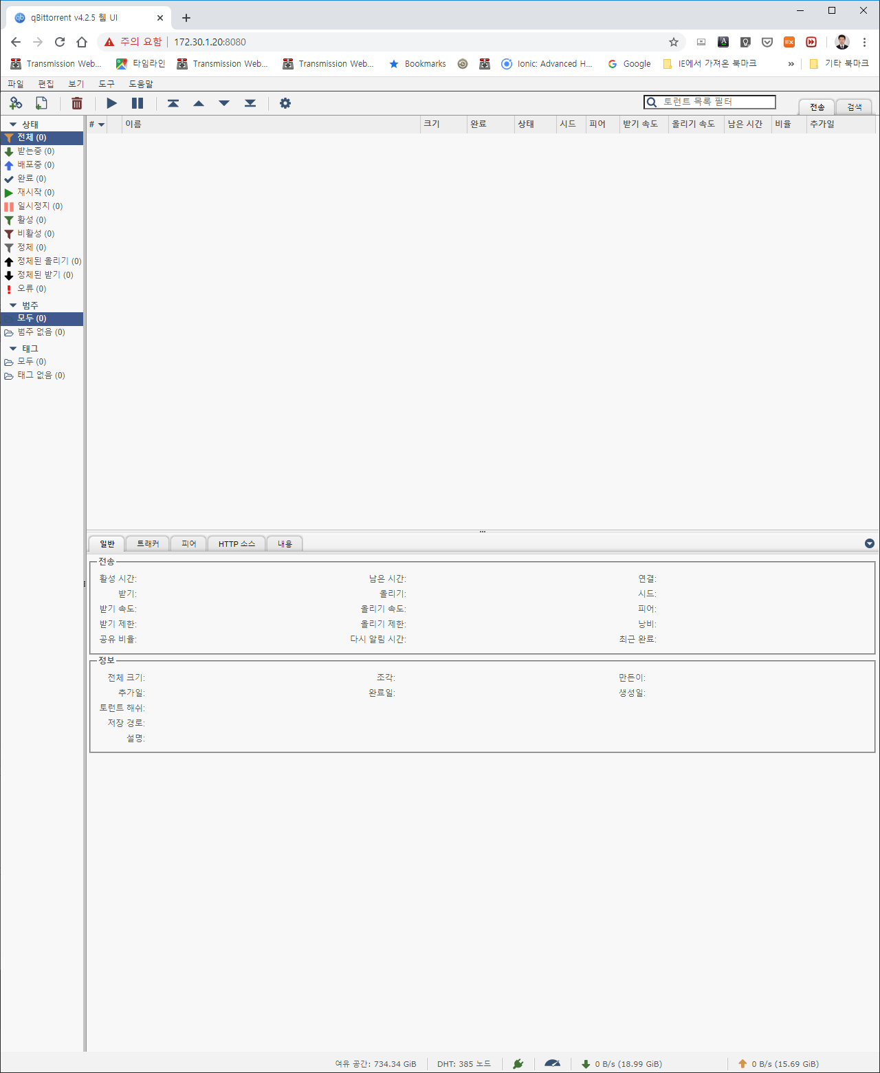 아래와 같이 Torrent 를 제어할 수 있는 화면이 보이고