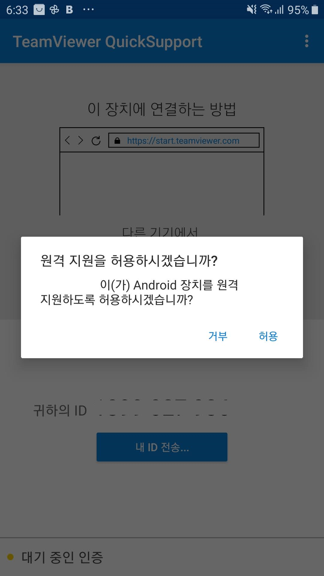 4. 부모님께 스마트폰의 원격 접속 허용을 누르시라고 한다(아래의 사진을 참고하세요)