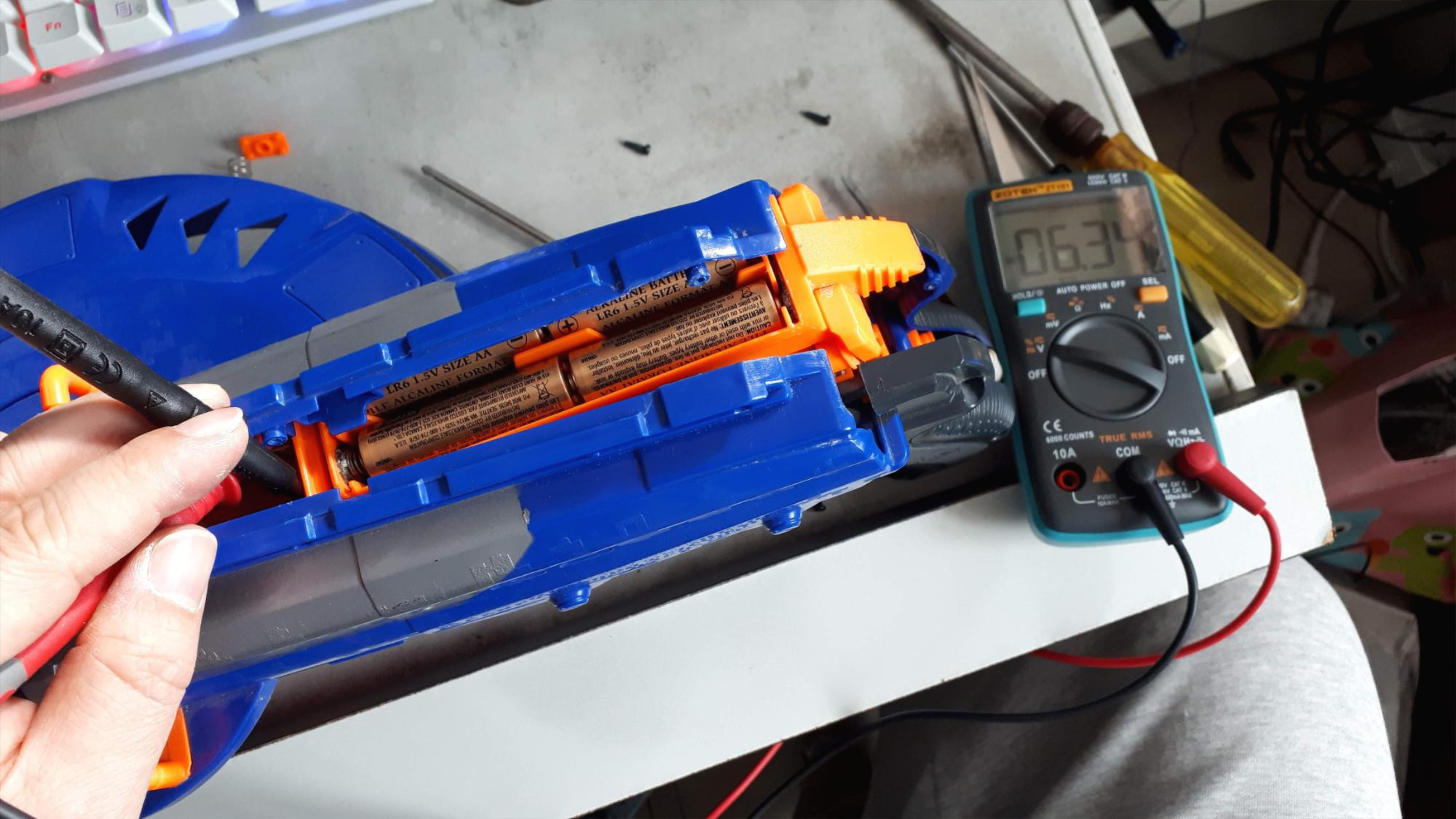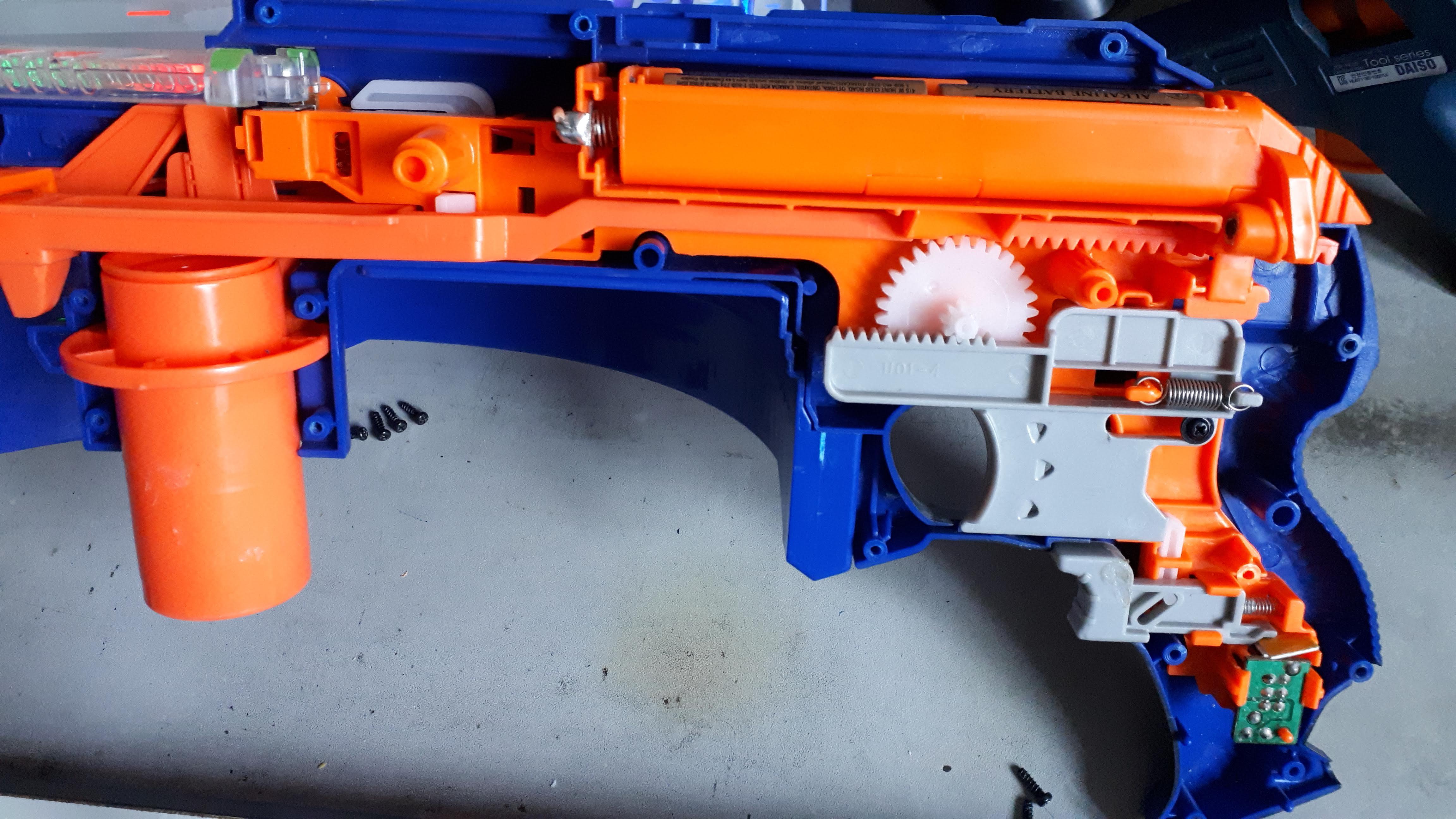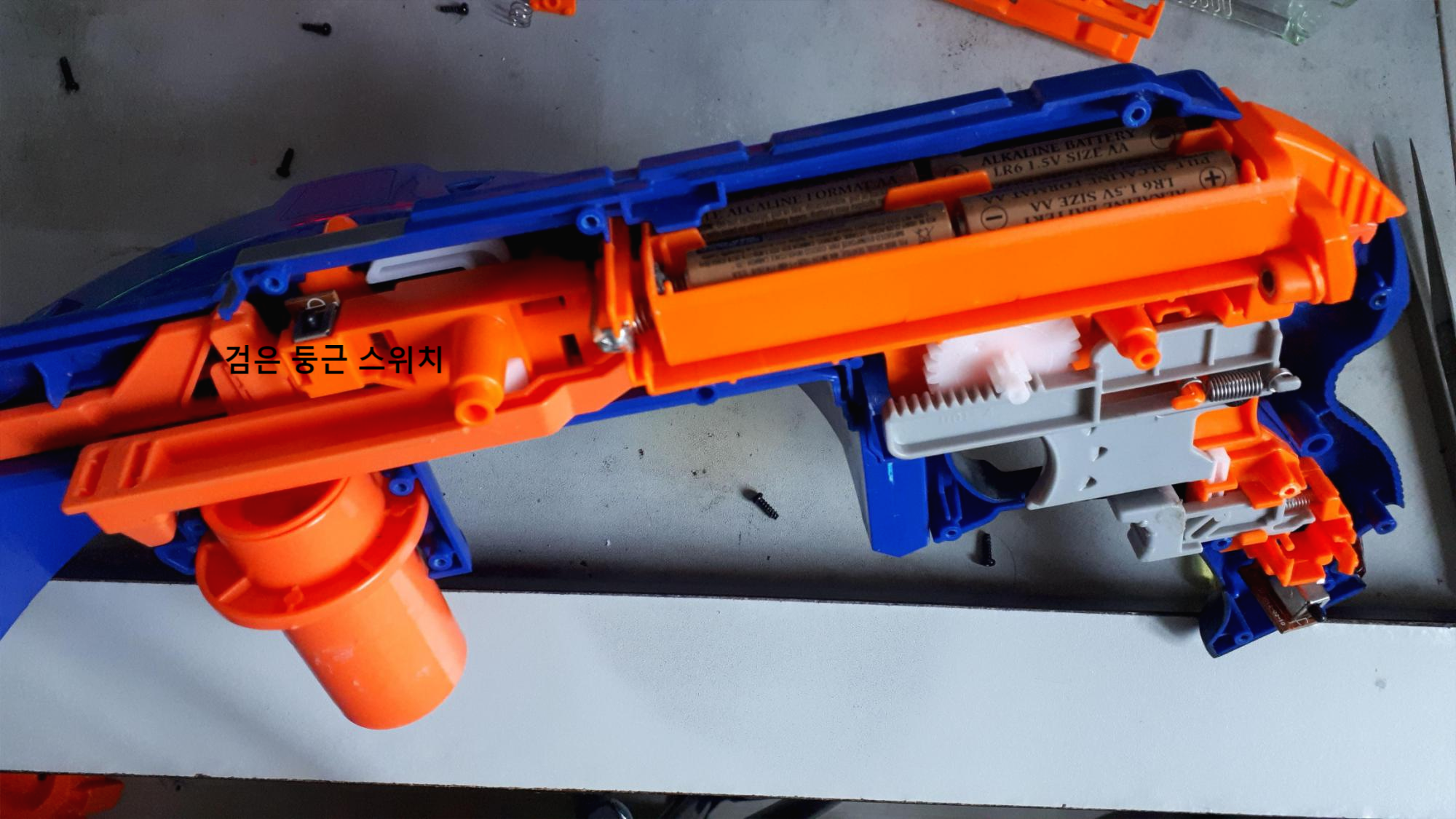 살살 분해하니 너프 총알 발사용 동력을 공급하는 모터가 보입니다