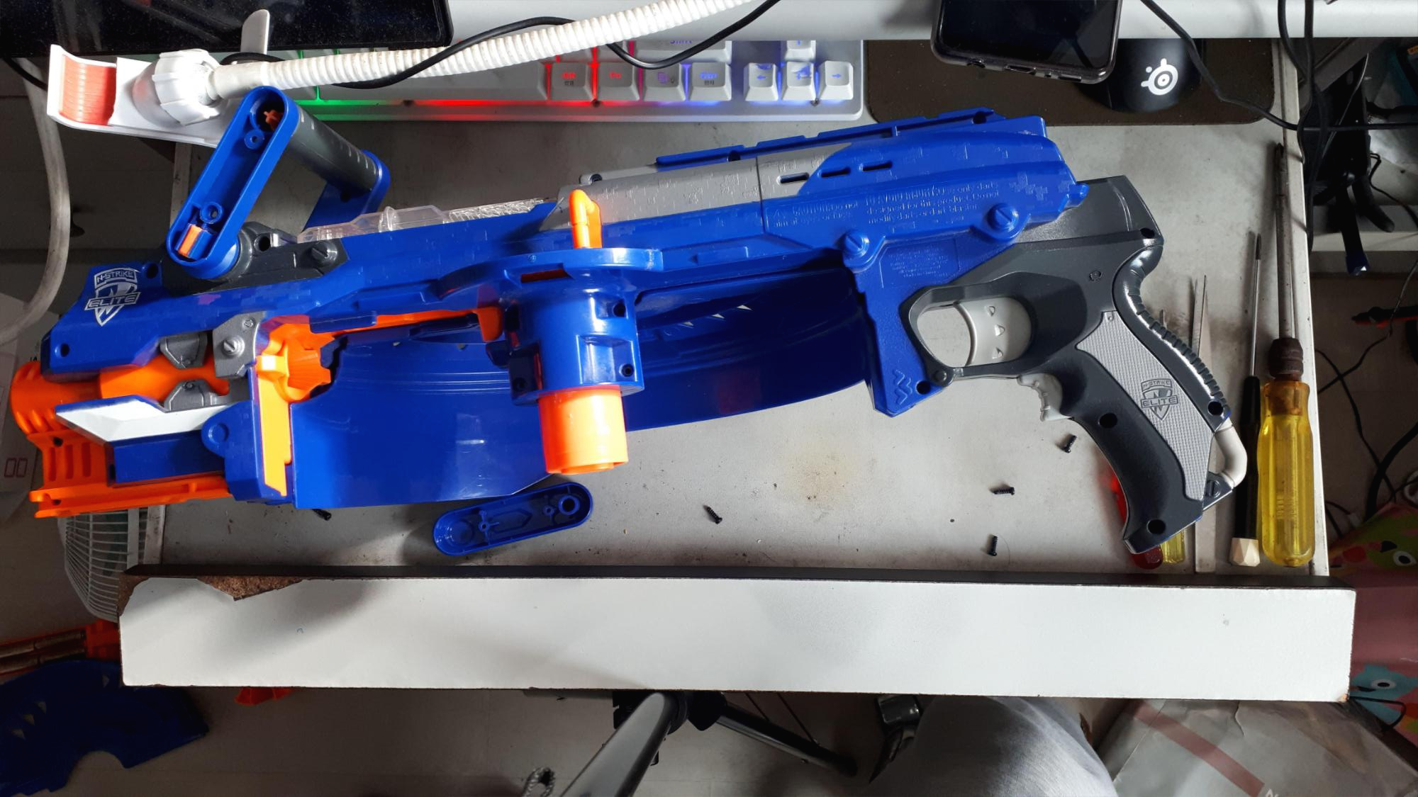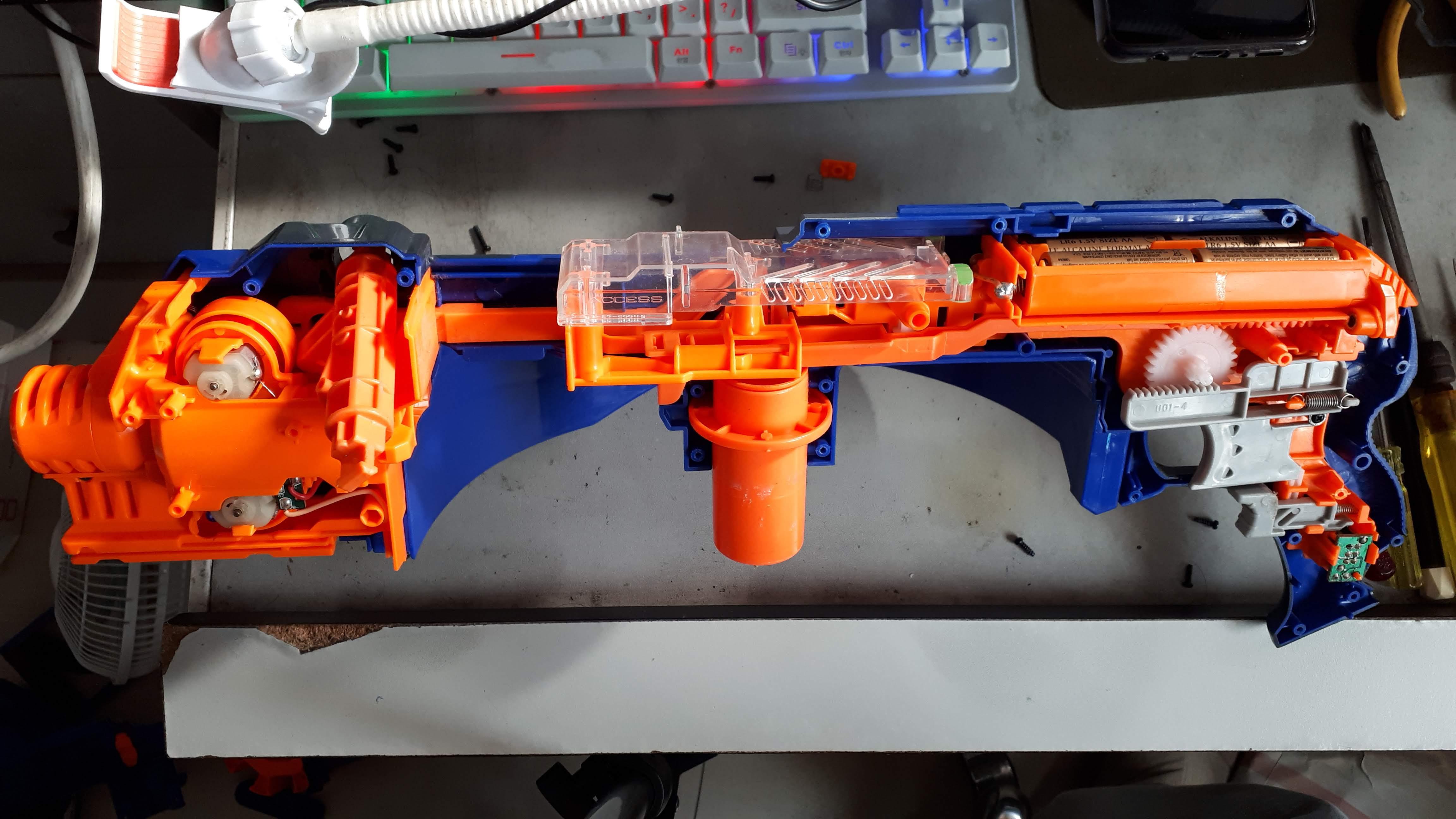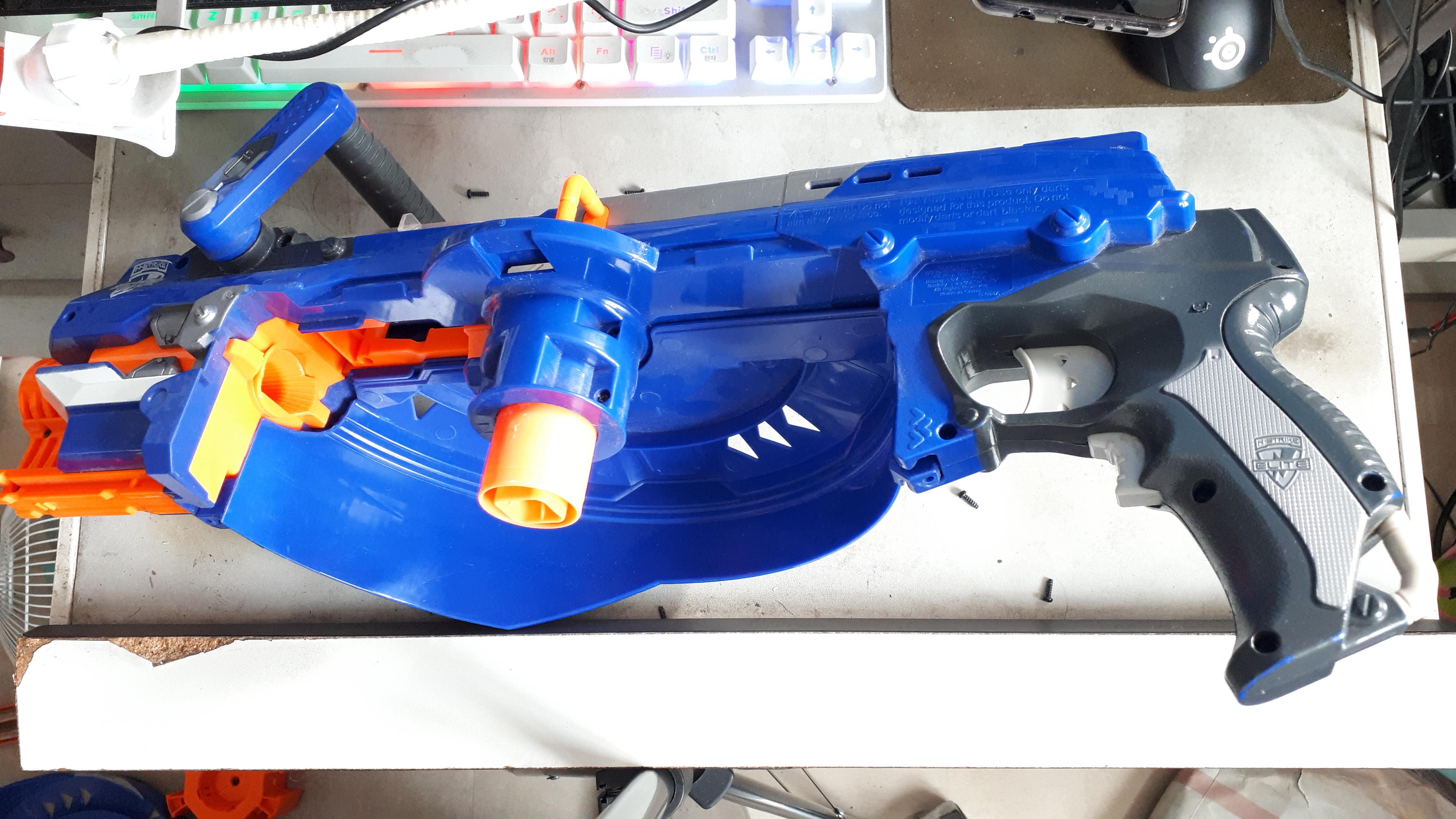 어릴때 가지고 놀던 너프 헤일파이어 총을 발견하고 놀려고 하는데