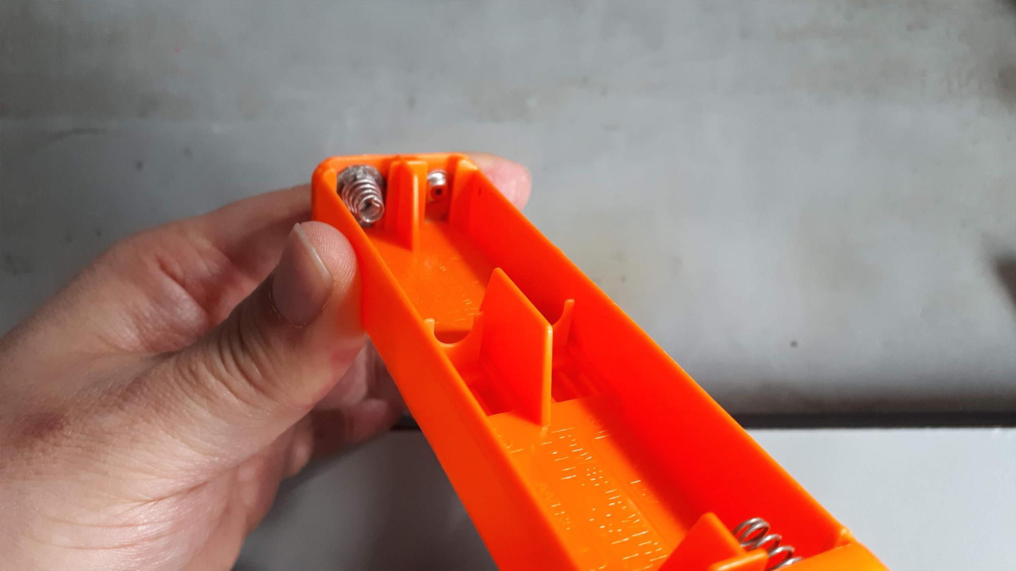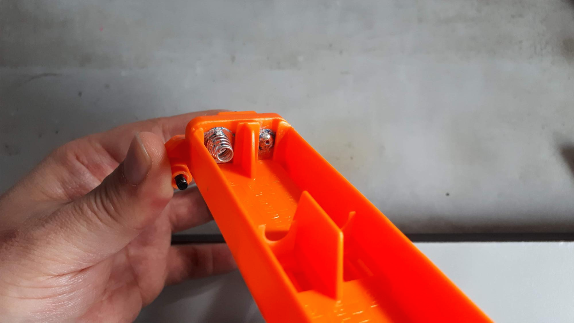 방아쇠와 닿는 부분이 잘 미끄러지도록 자른 카드를 방아쇠 측에 배치하였습니다