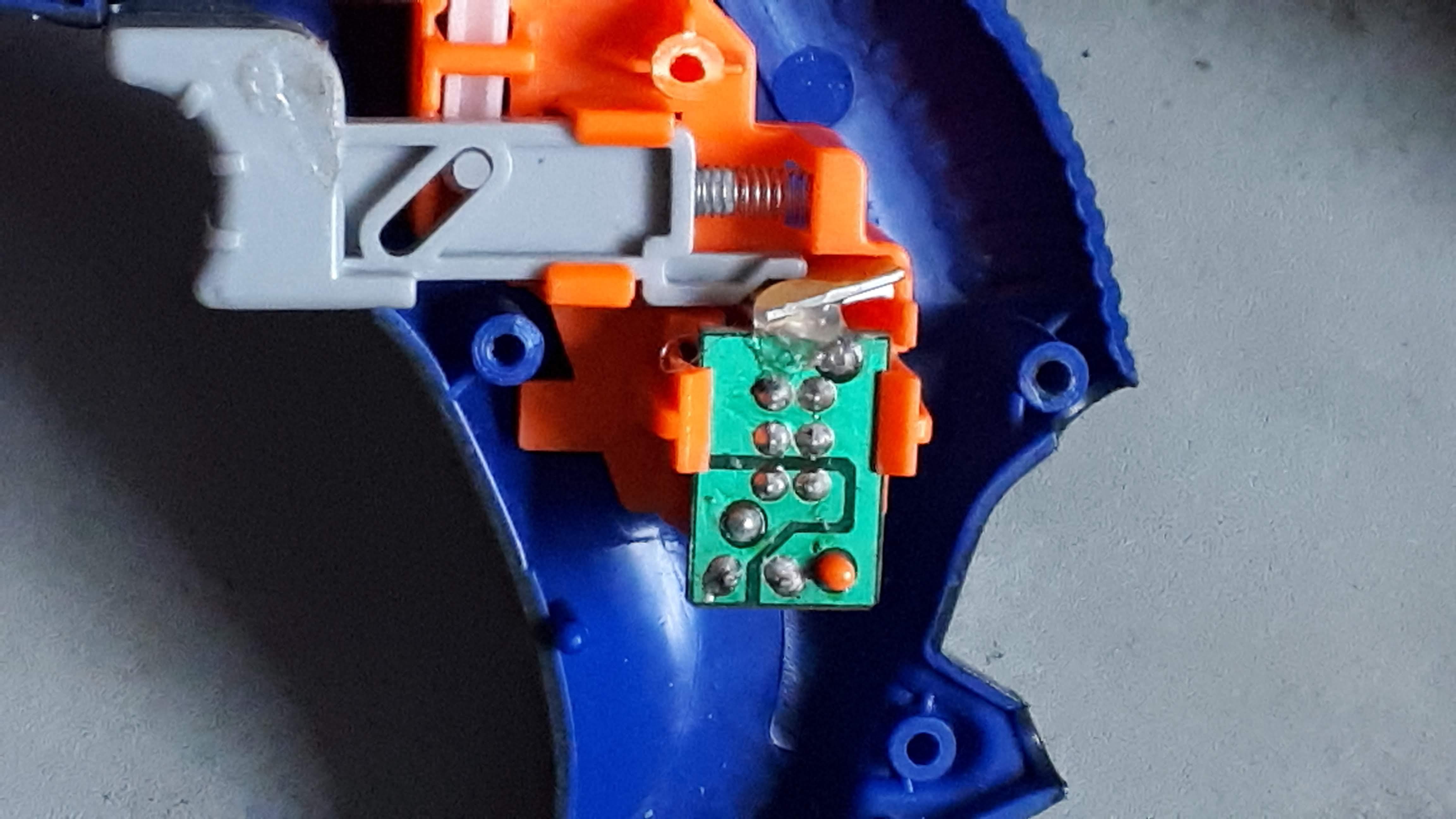 PCB를 꺼낸 상태에서는 모터 동작 방아쇠로 누를 때보다 스위치를 더 깊게 누를 수 있어서 동작하네요