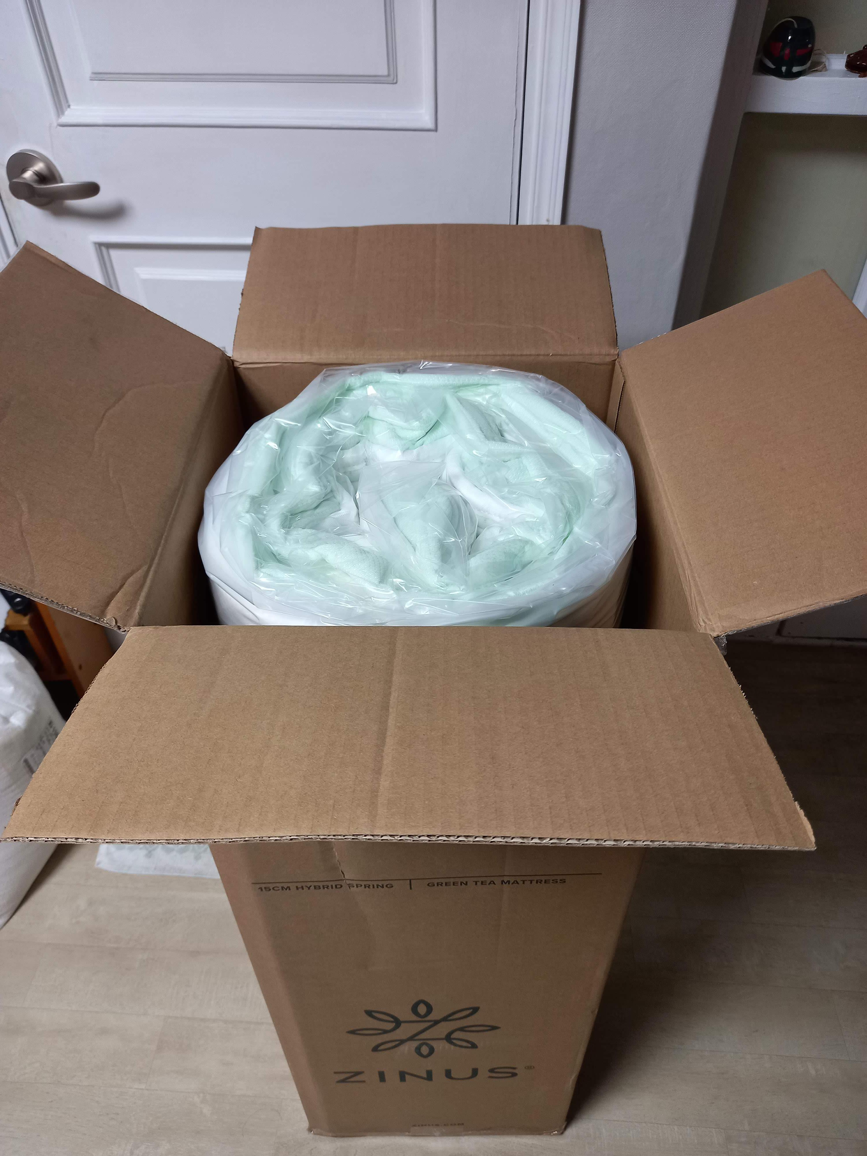 박스를 열어보니 매트리스가 압축되어 동그랗게 말려 있는 모습입니다