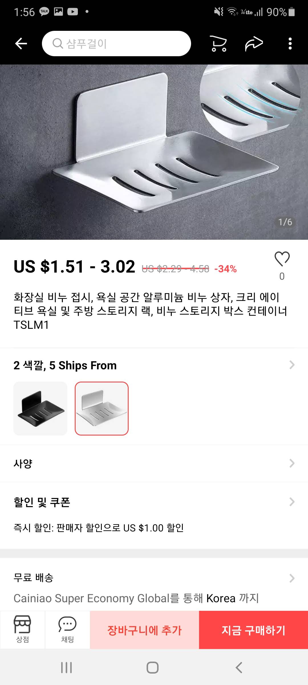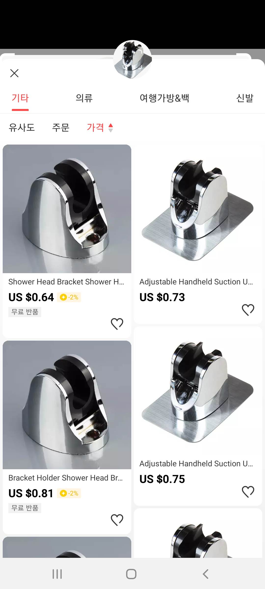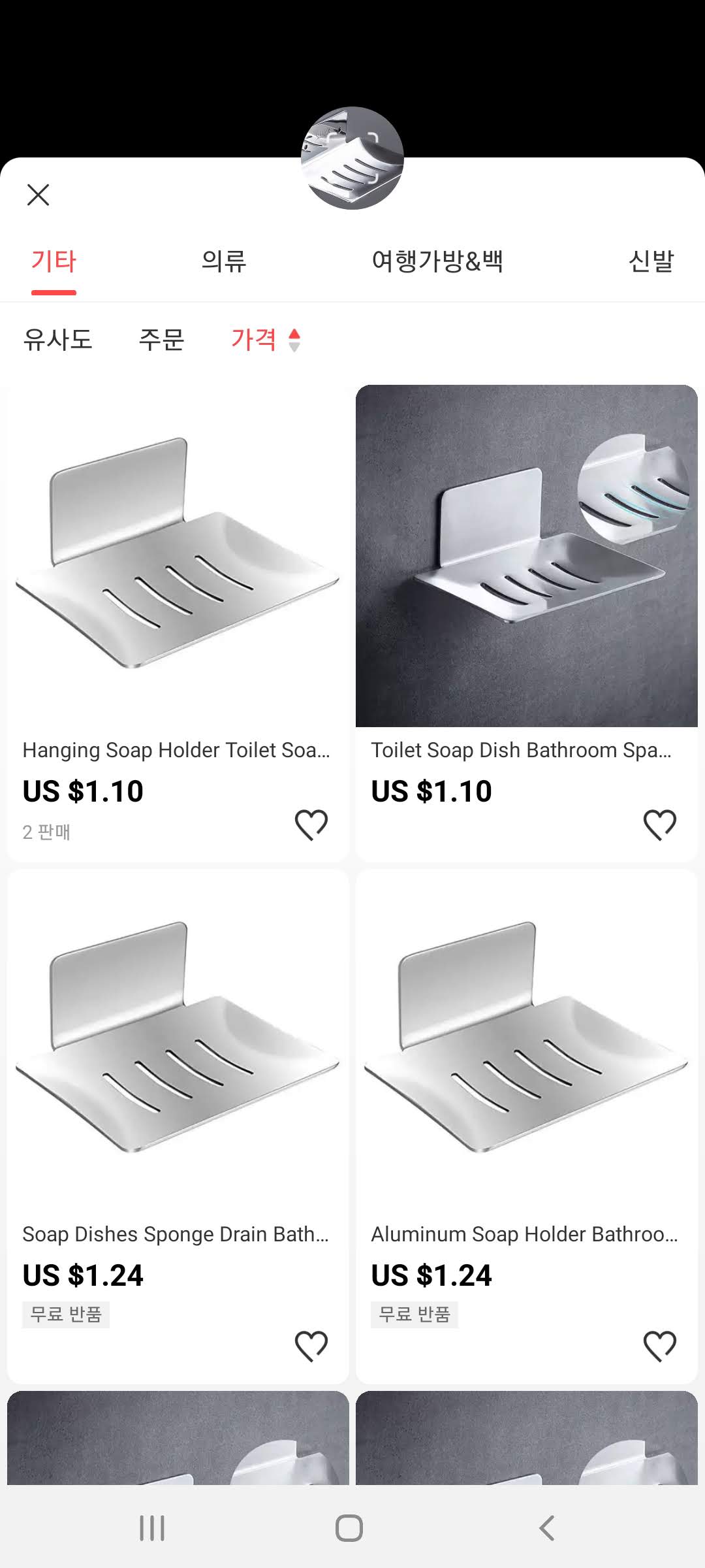 위의 스텐 비누 받침대의 경우와 같이 가격이 범위로 표시되면