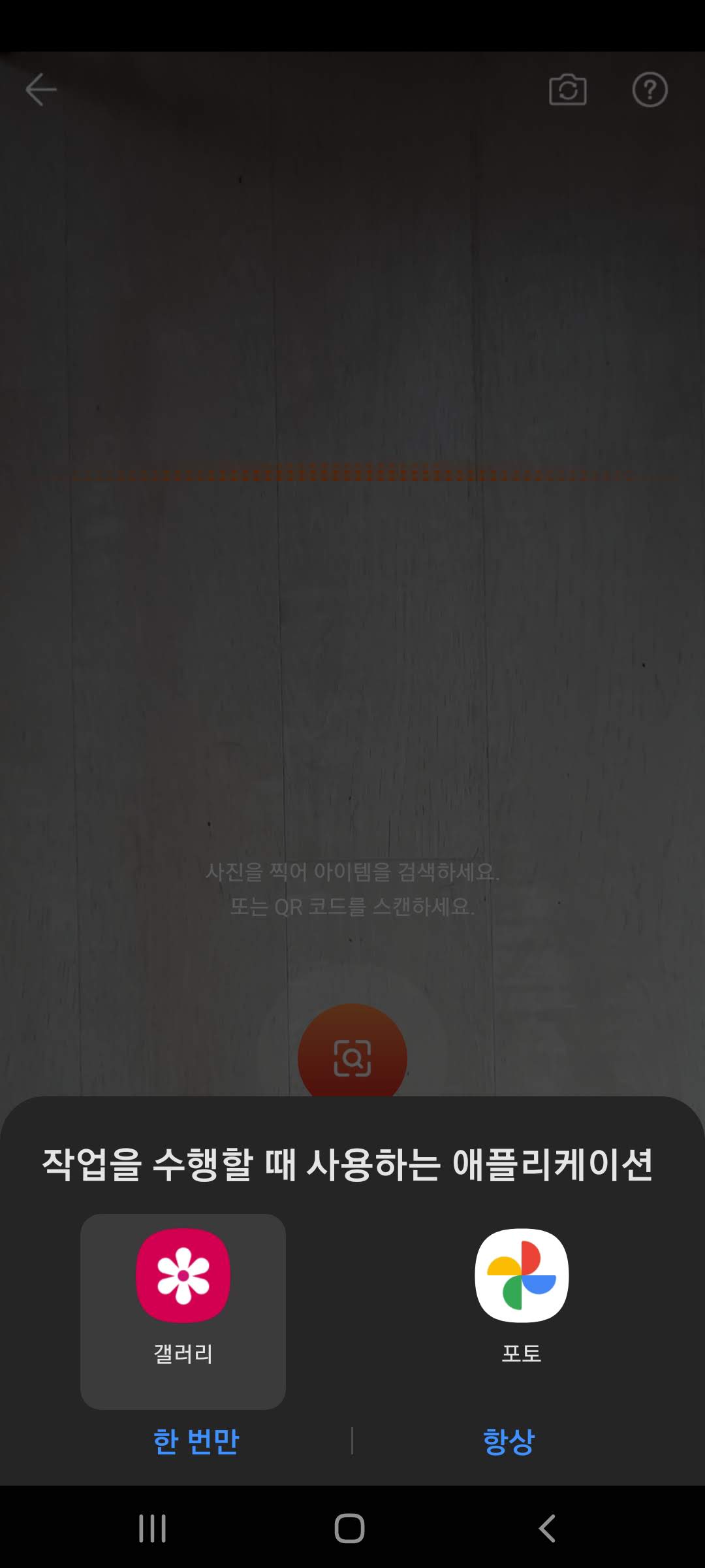 사진을 선택하기 위한 앱 종류 선택창이 표시되면