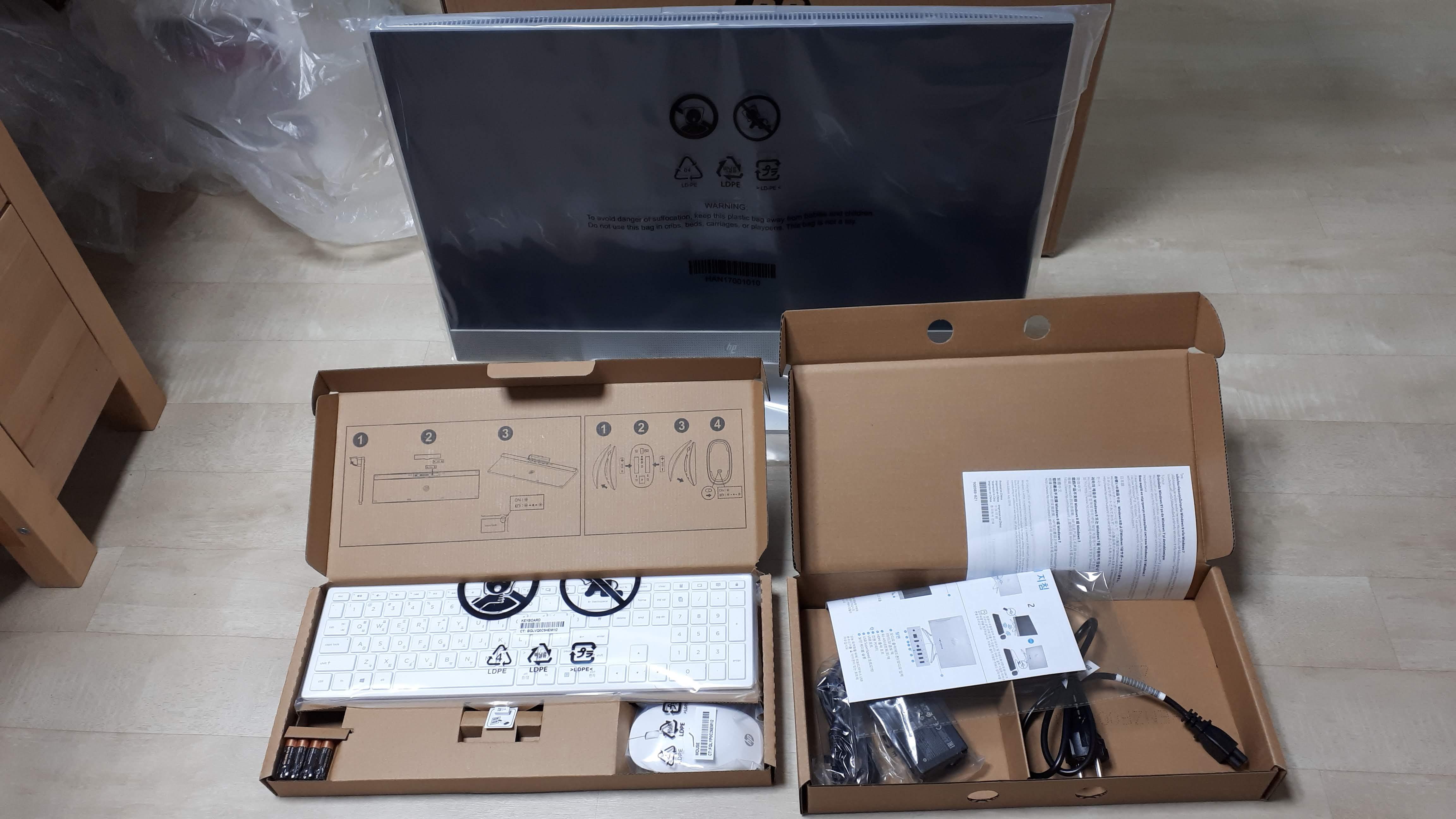 상단의 스티로폼을 들어내니 악세사리 박스 2개와 올인원 PC 본체가 보입니다
