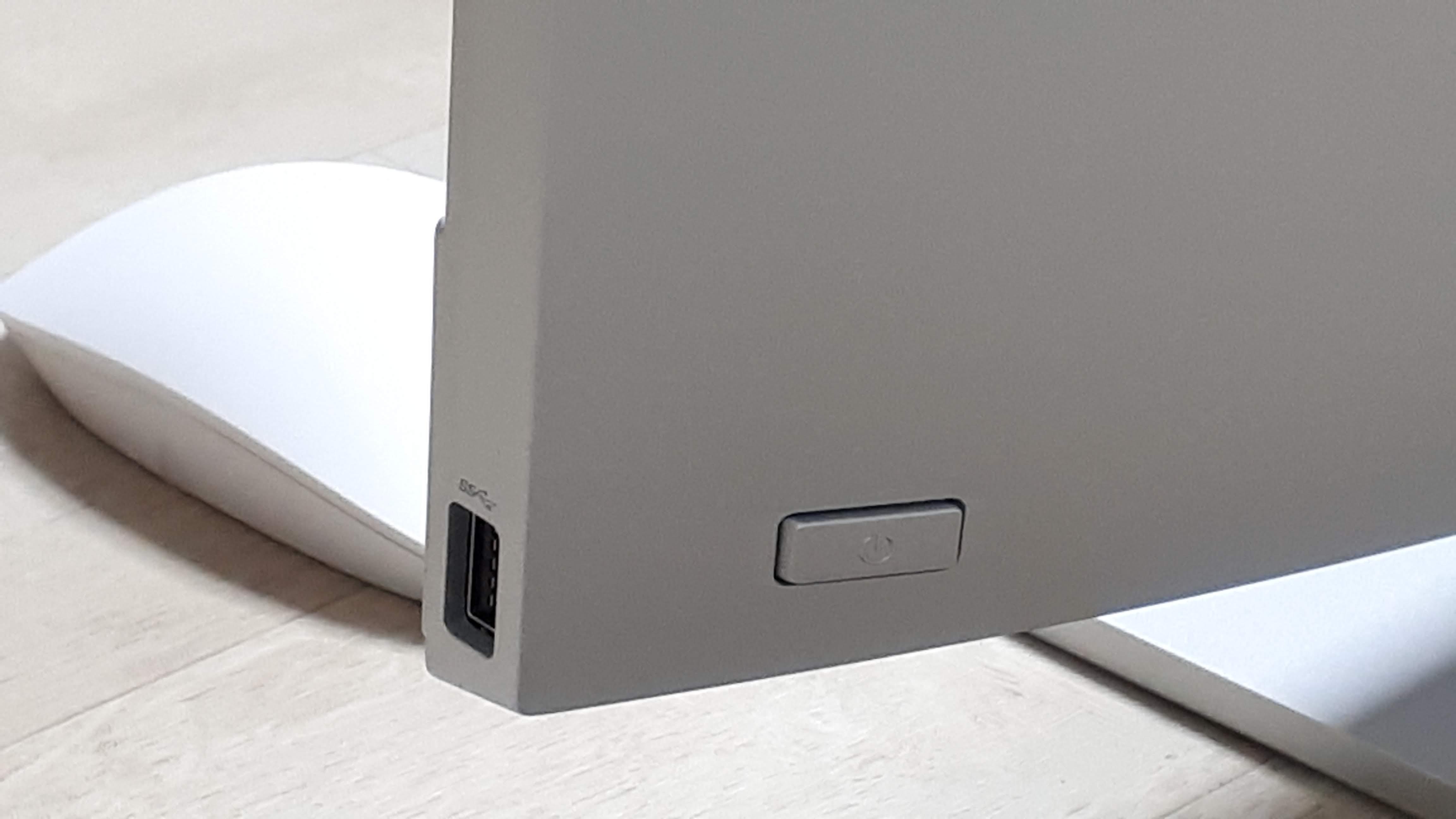 모니터 정면에서 봤을때 오른쪽 하단에 있는 USB 3.0 단자와 전원 스위치 입니다