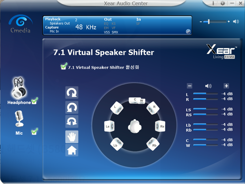 7.1 Virtual Speaker Shifter 를 활성화시킨 후