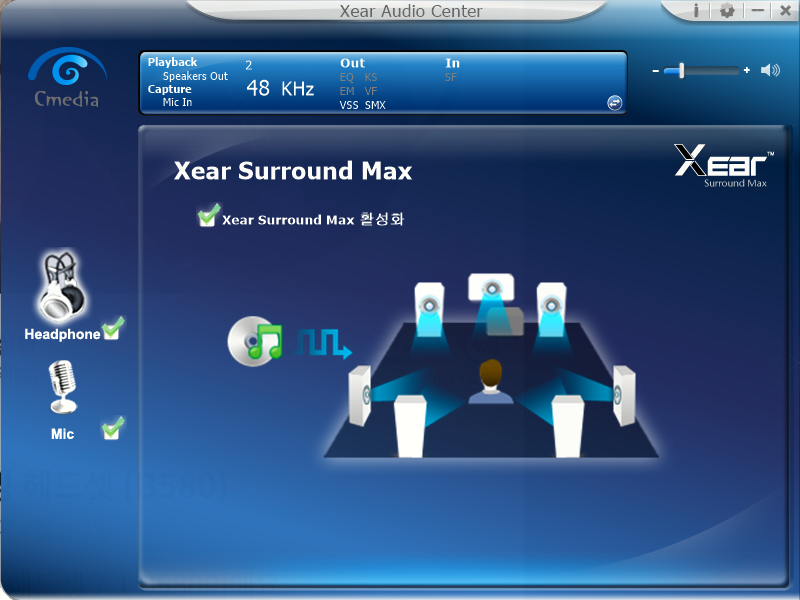 Xear Surround Max 를 활성화화니 영화의 음향이 더욱 풍부해져서