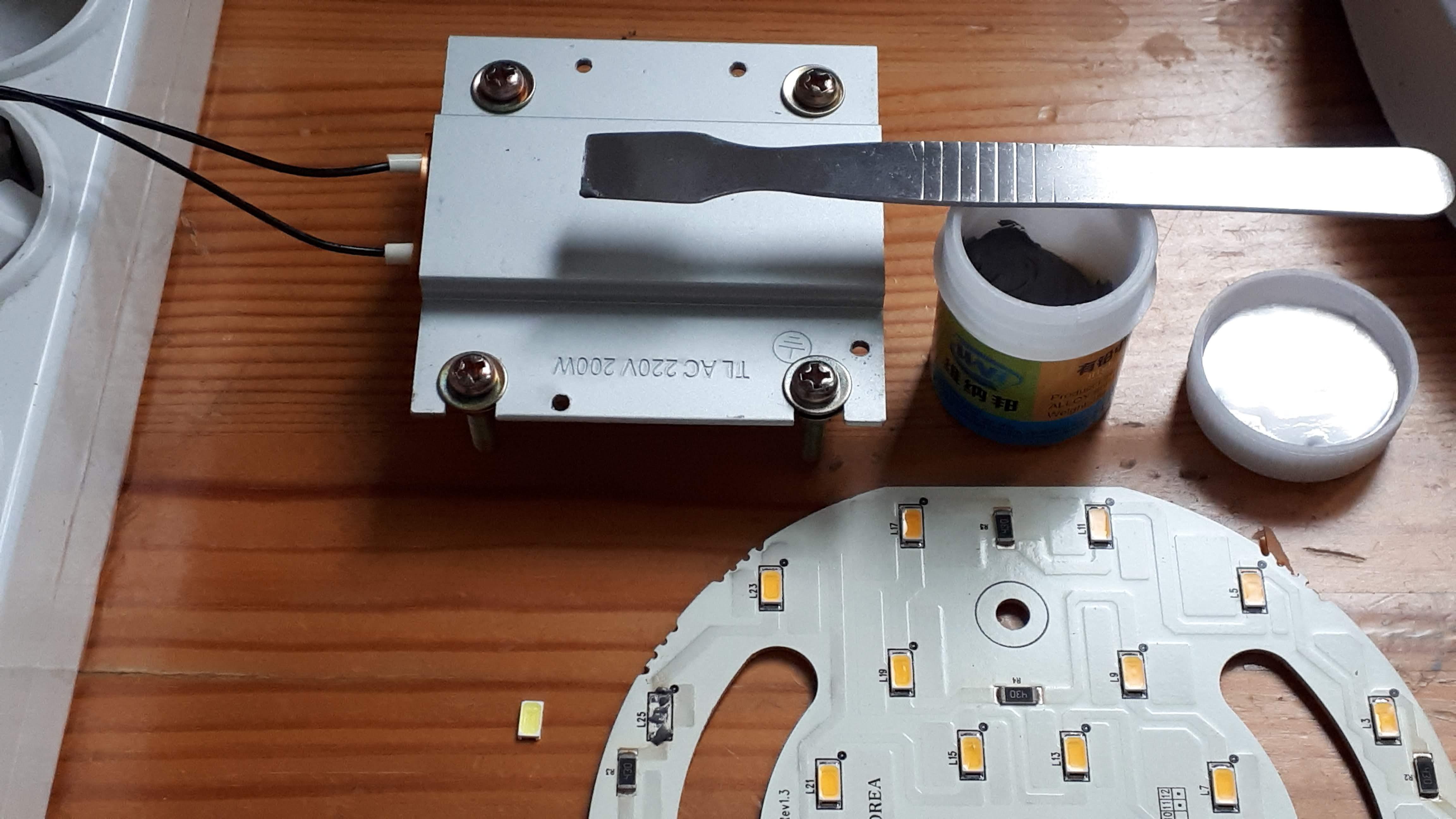 새 칩 LED를 부착할 자리에 크립납을 적당량을 묻혔습니다