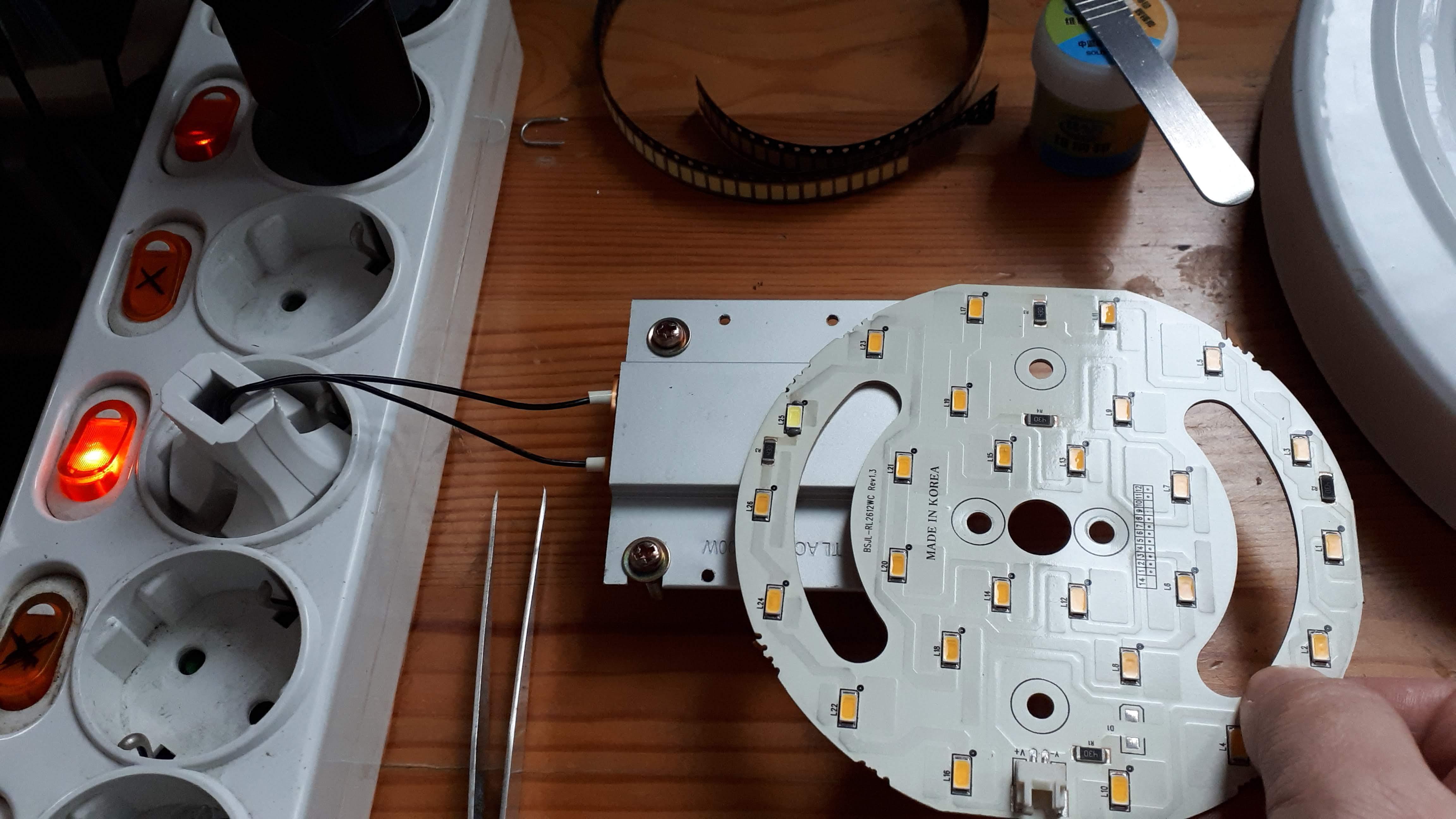 교체할 새 칩 LED가 잘 동작하는지와 극성을 확인합니다