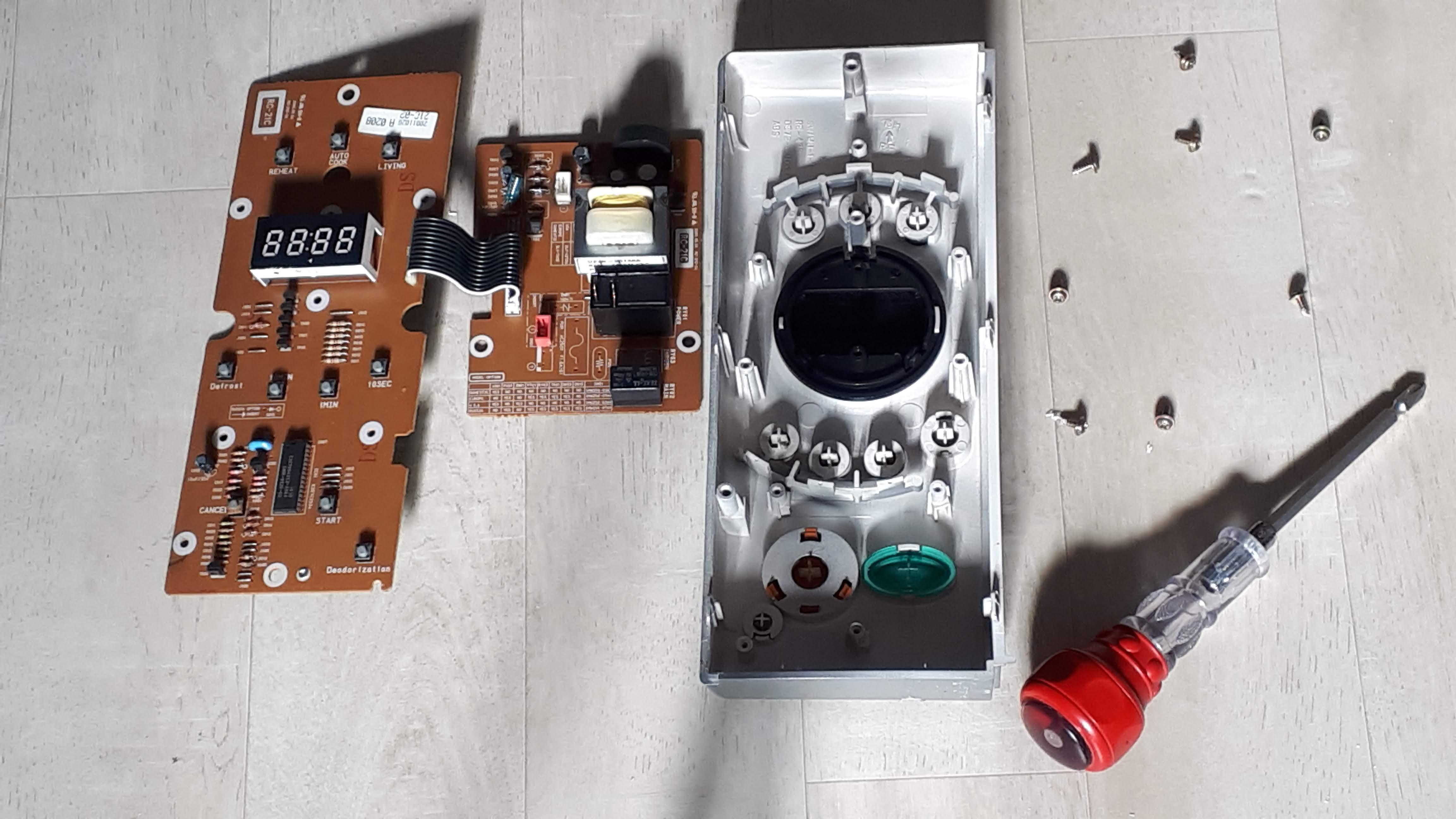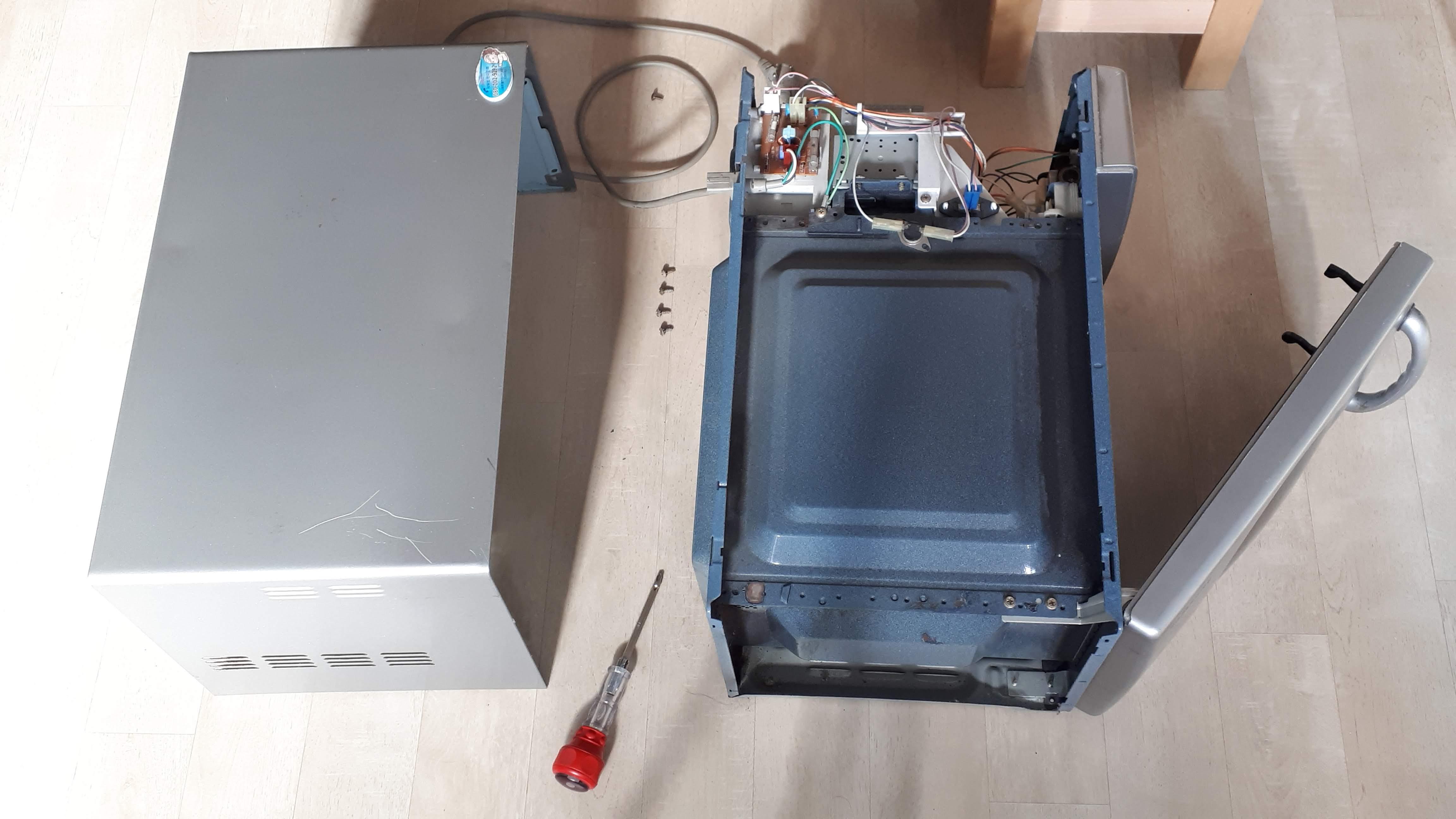 스위치 교체를 위해 삼성 전자레인지를 분해하여
