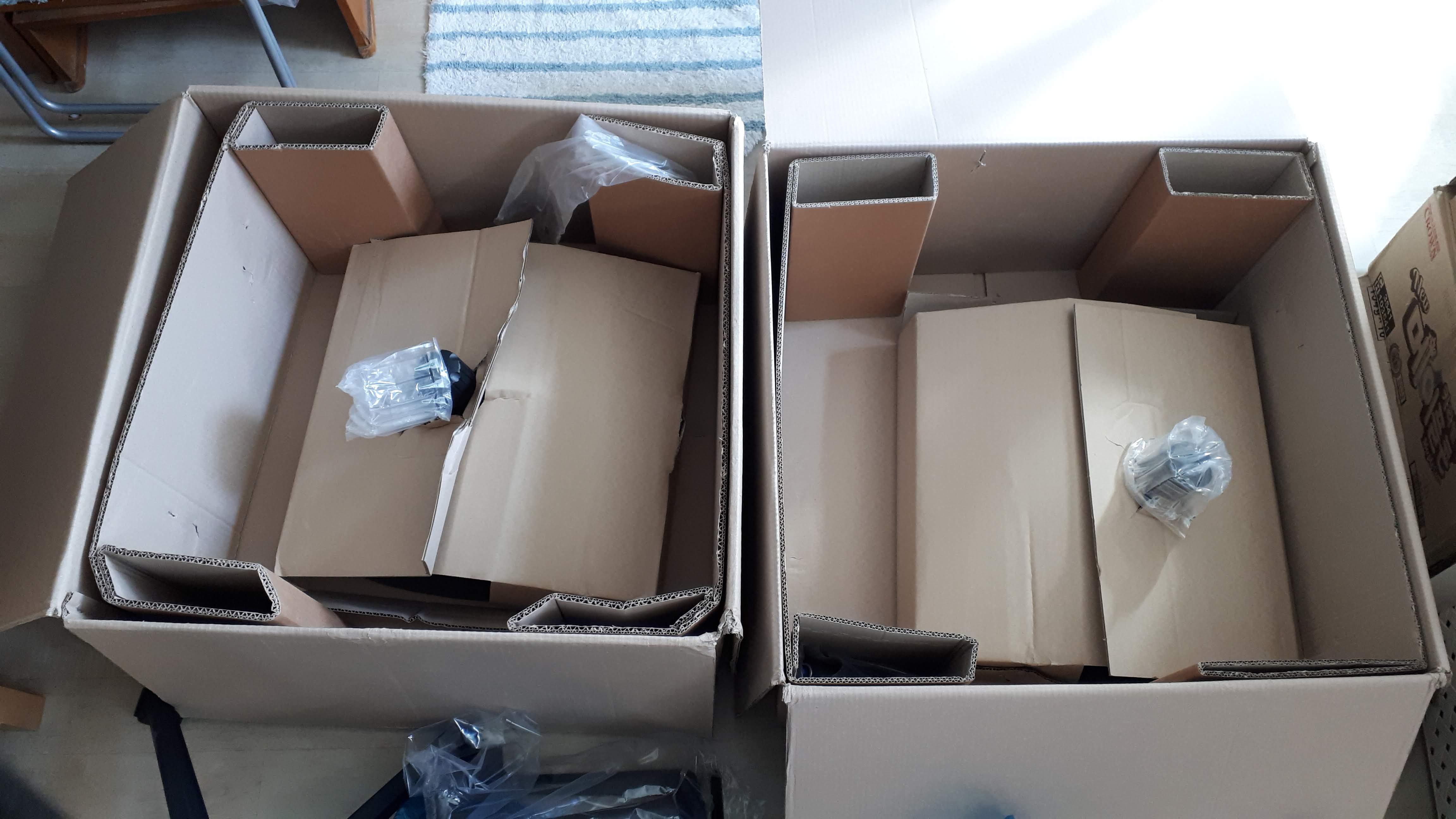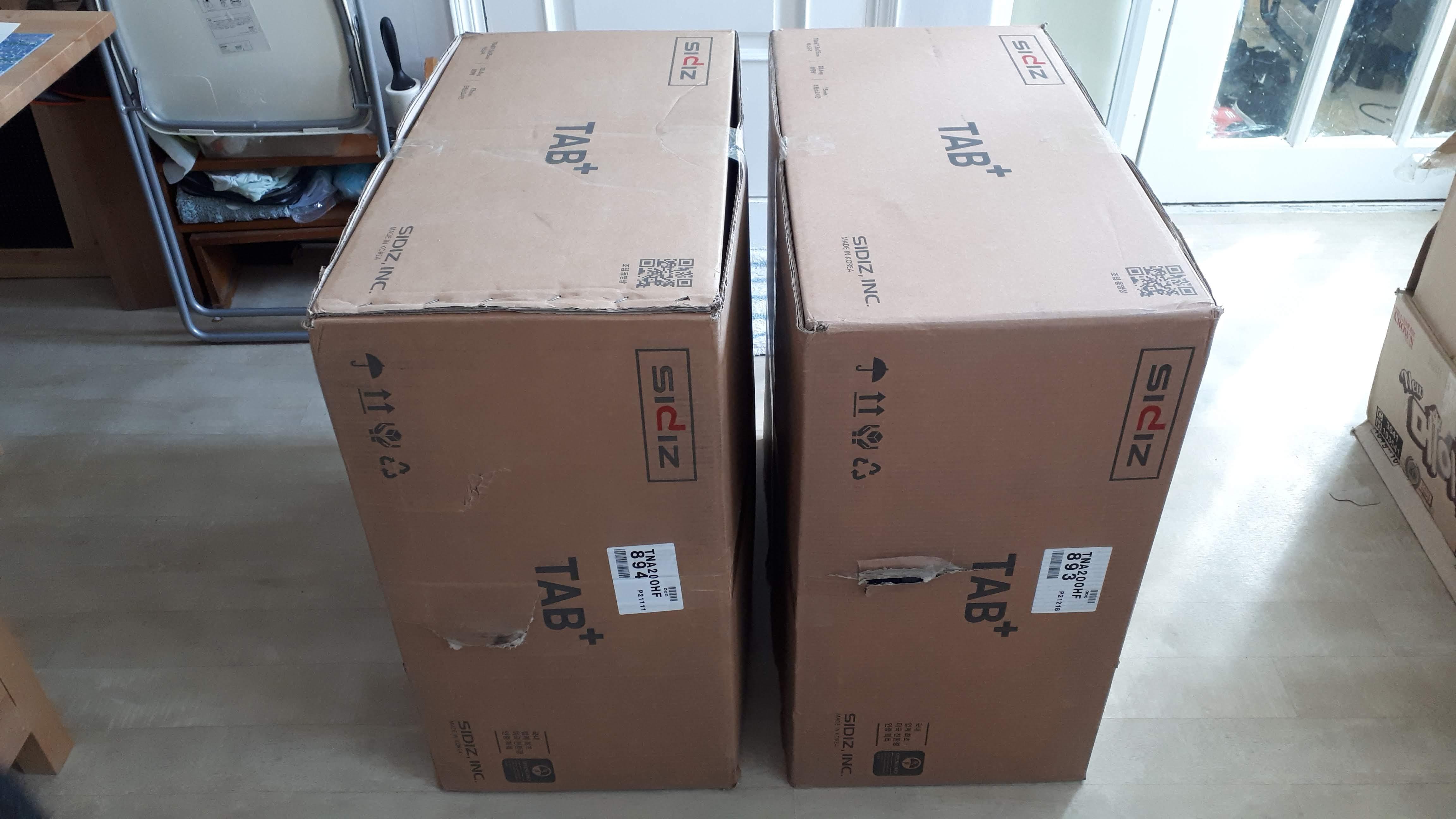 조립시에는 아래의 사진처럼 배송 박스를 세워놓고