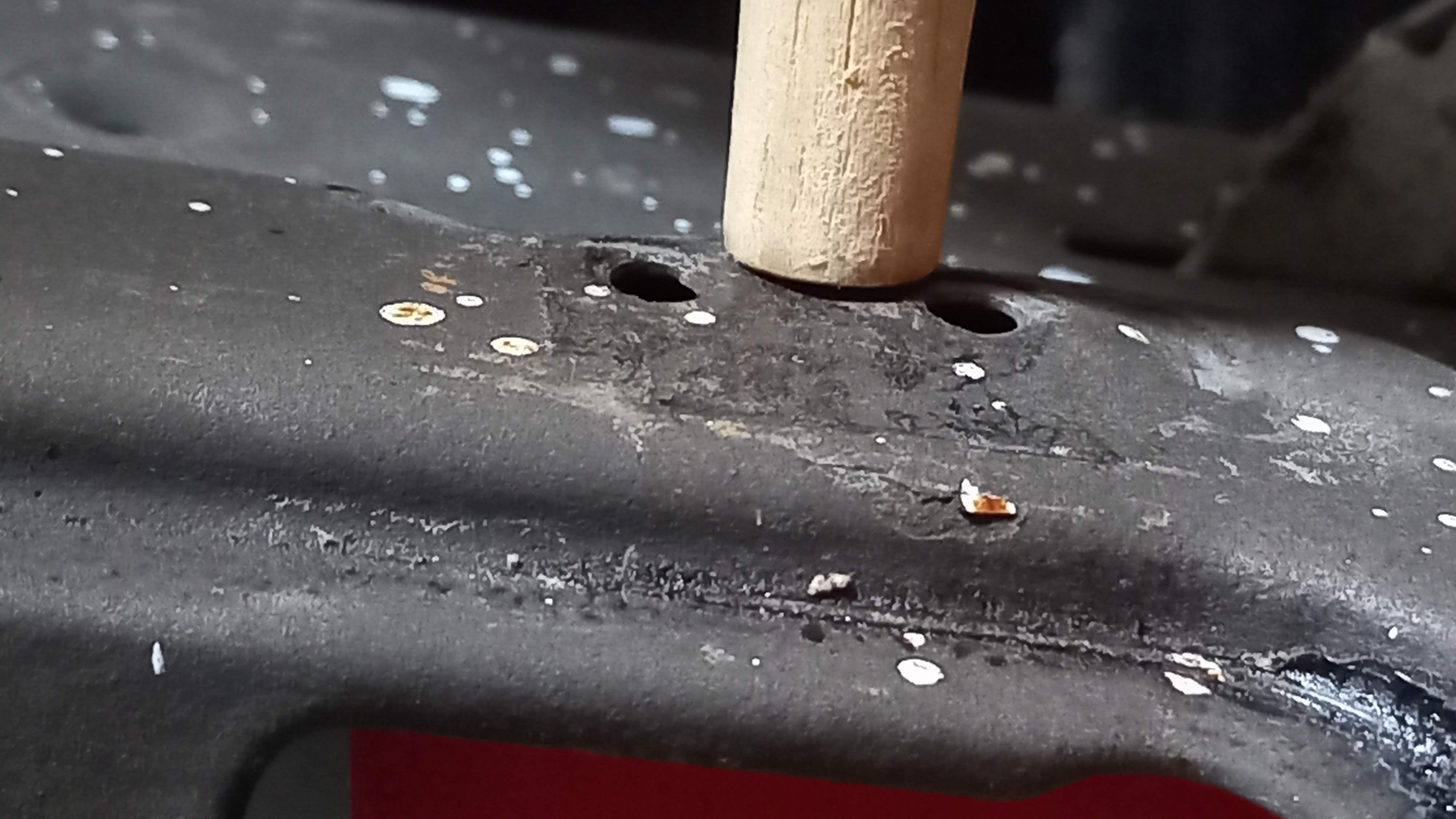 아래쪽이 나무로 잘 받쳐져 있는 상태에서 조금 두드리니 아래 사진과 같이 잘 펴집니다
