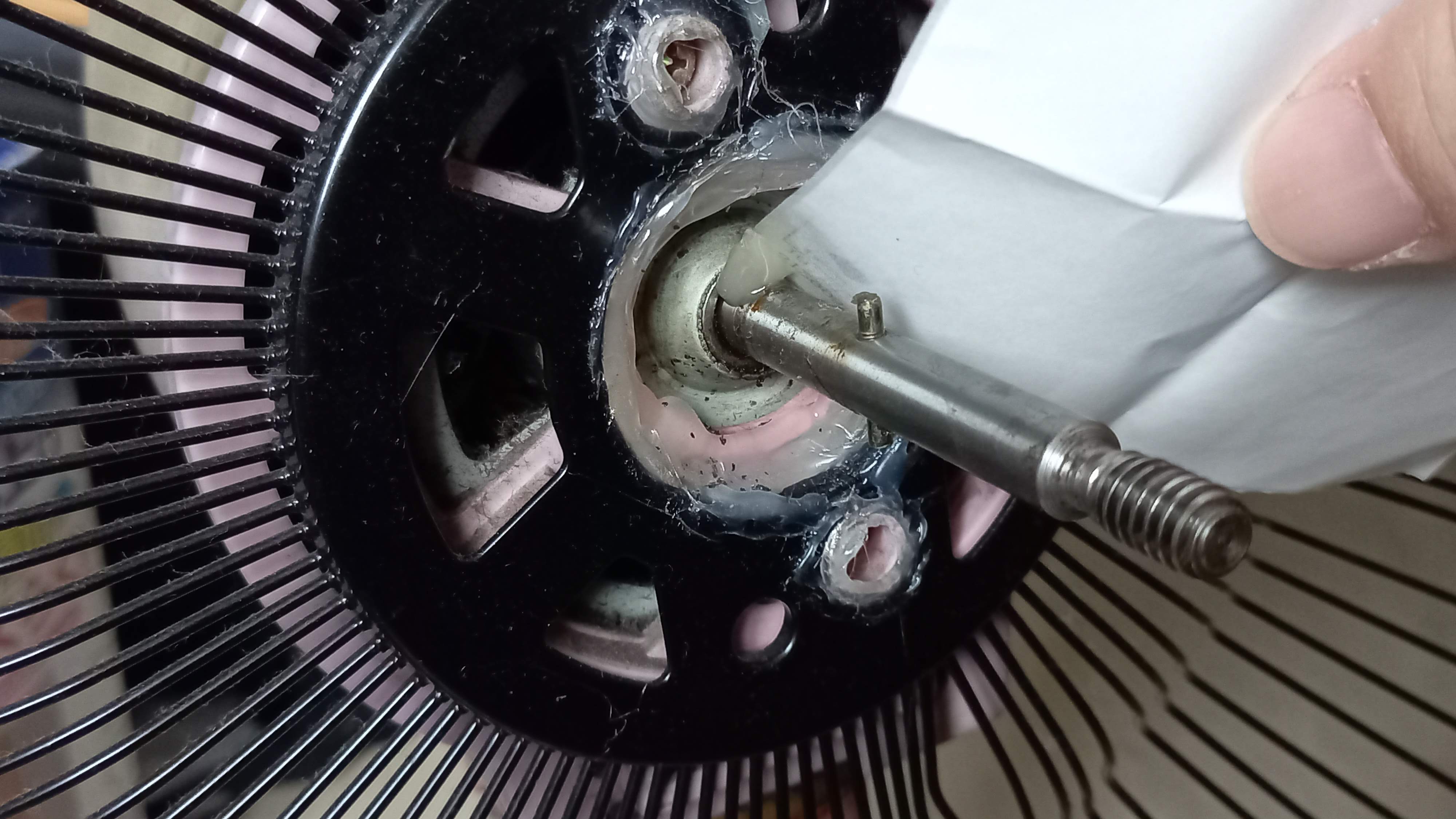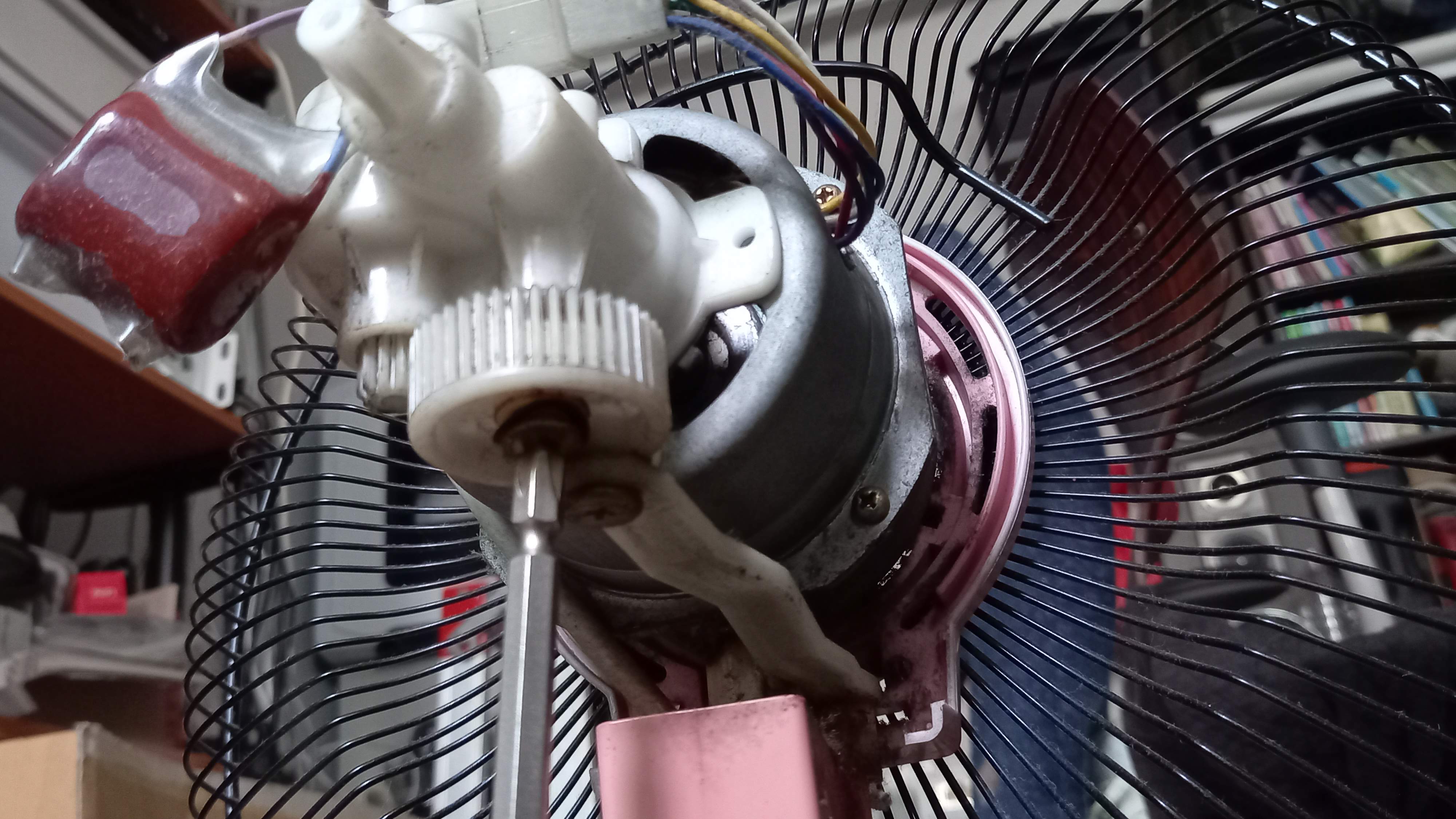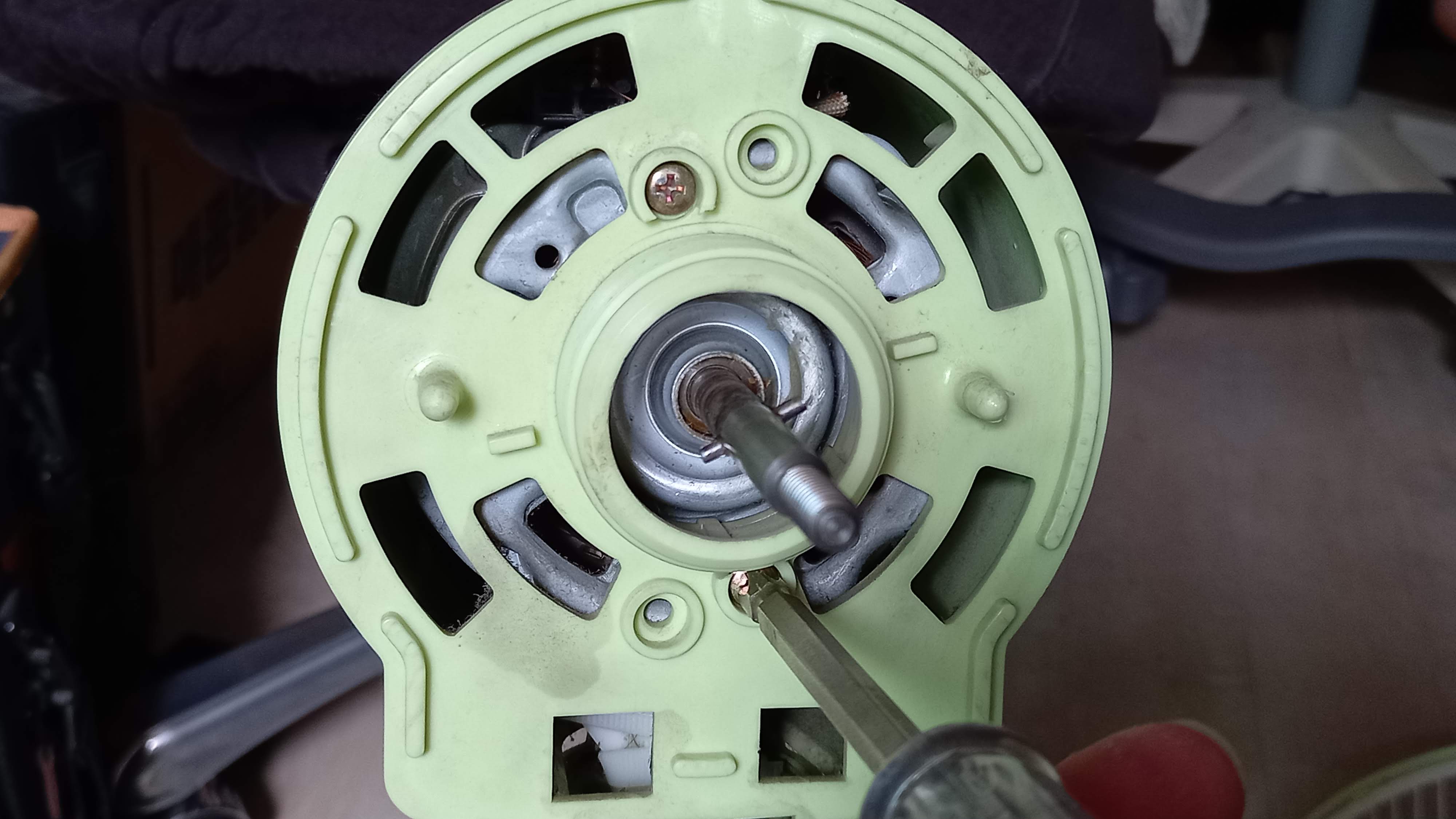 선풍기를 눕히고 모터축을 손으로 돌려줍니다