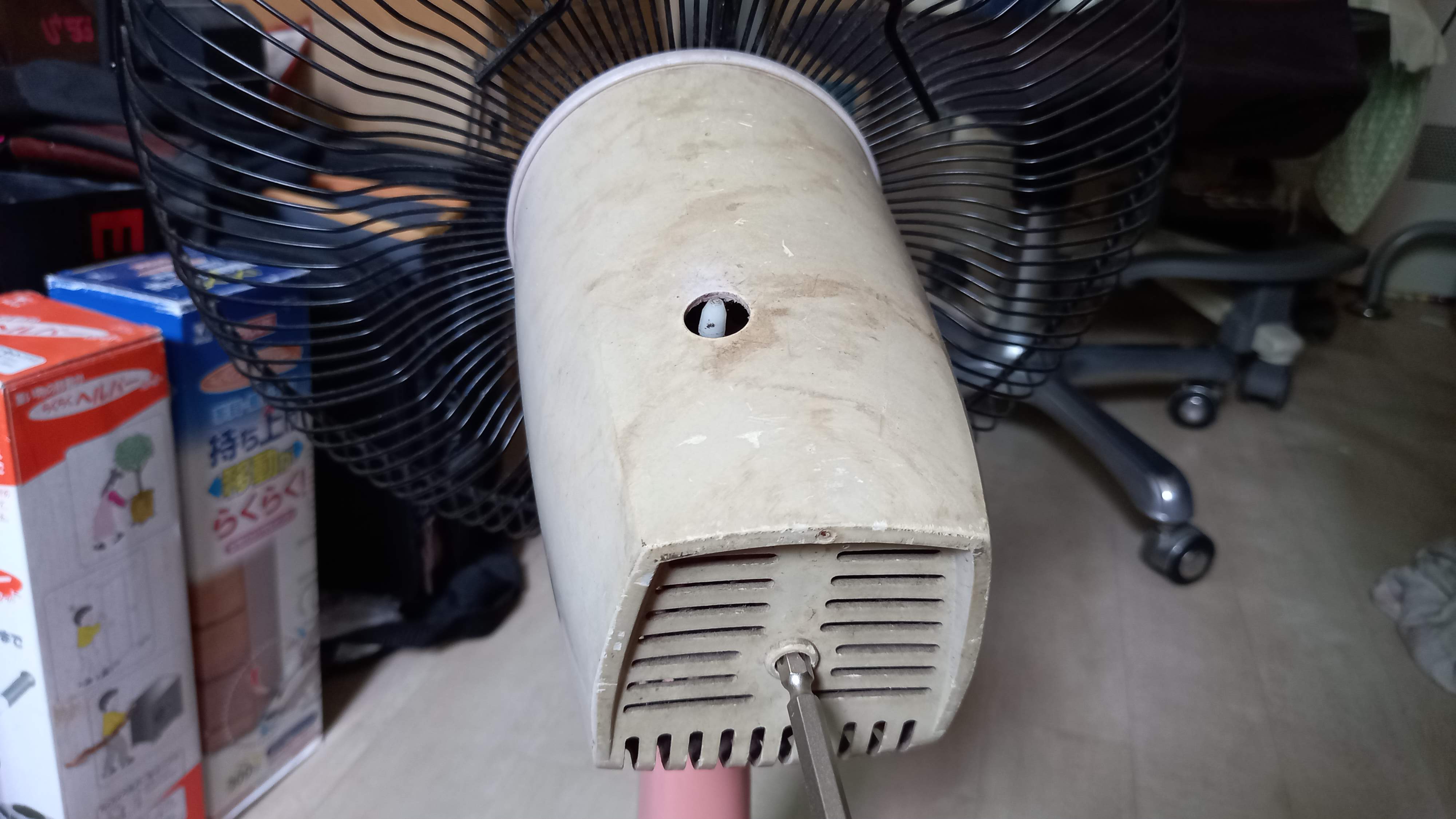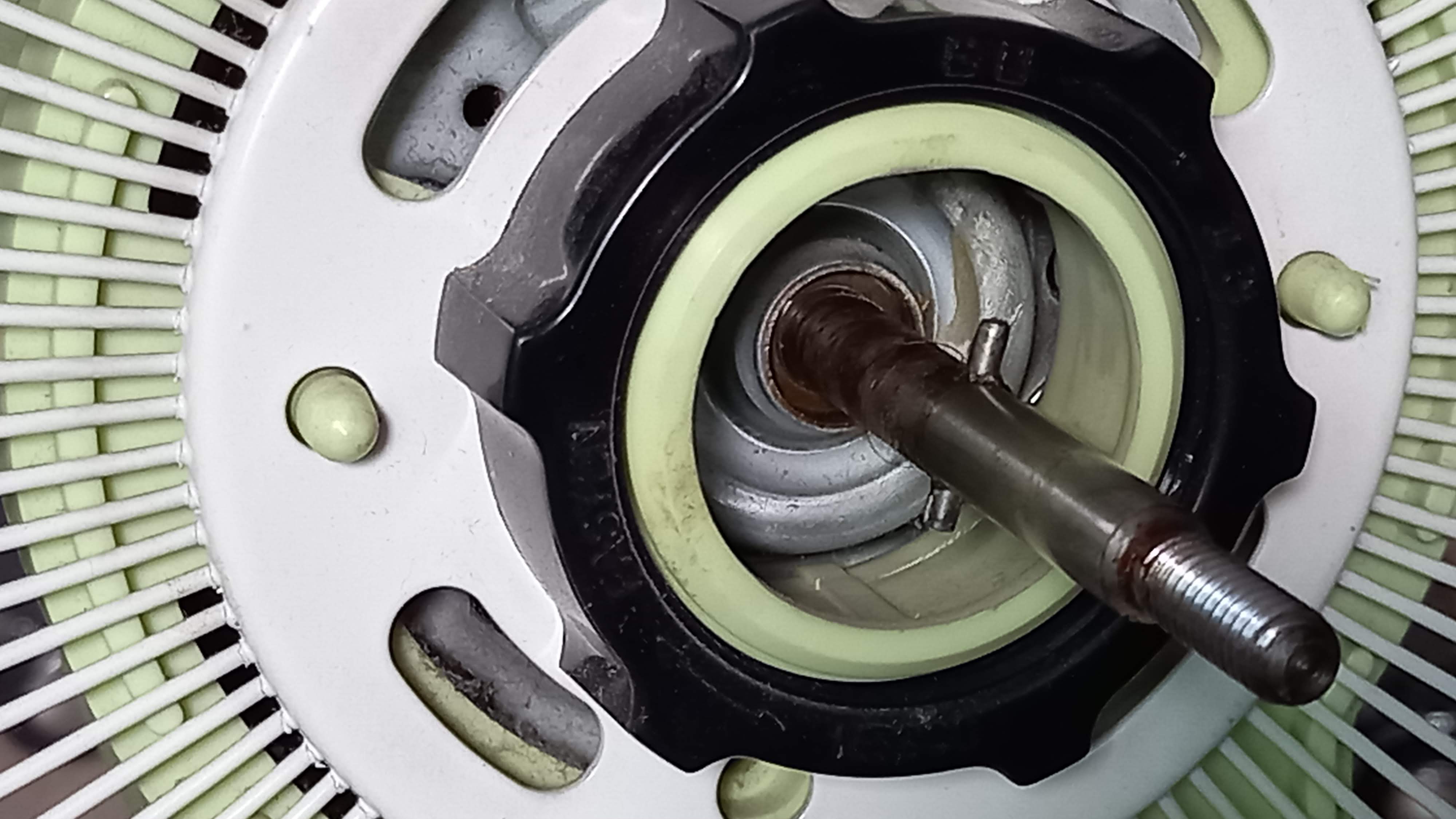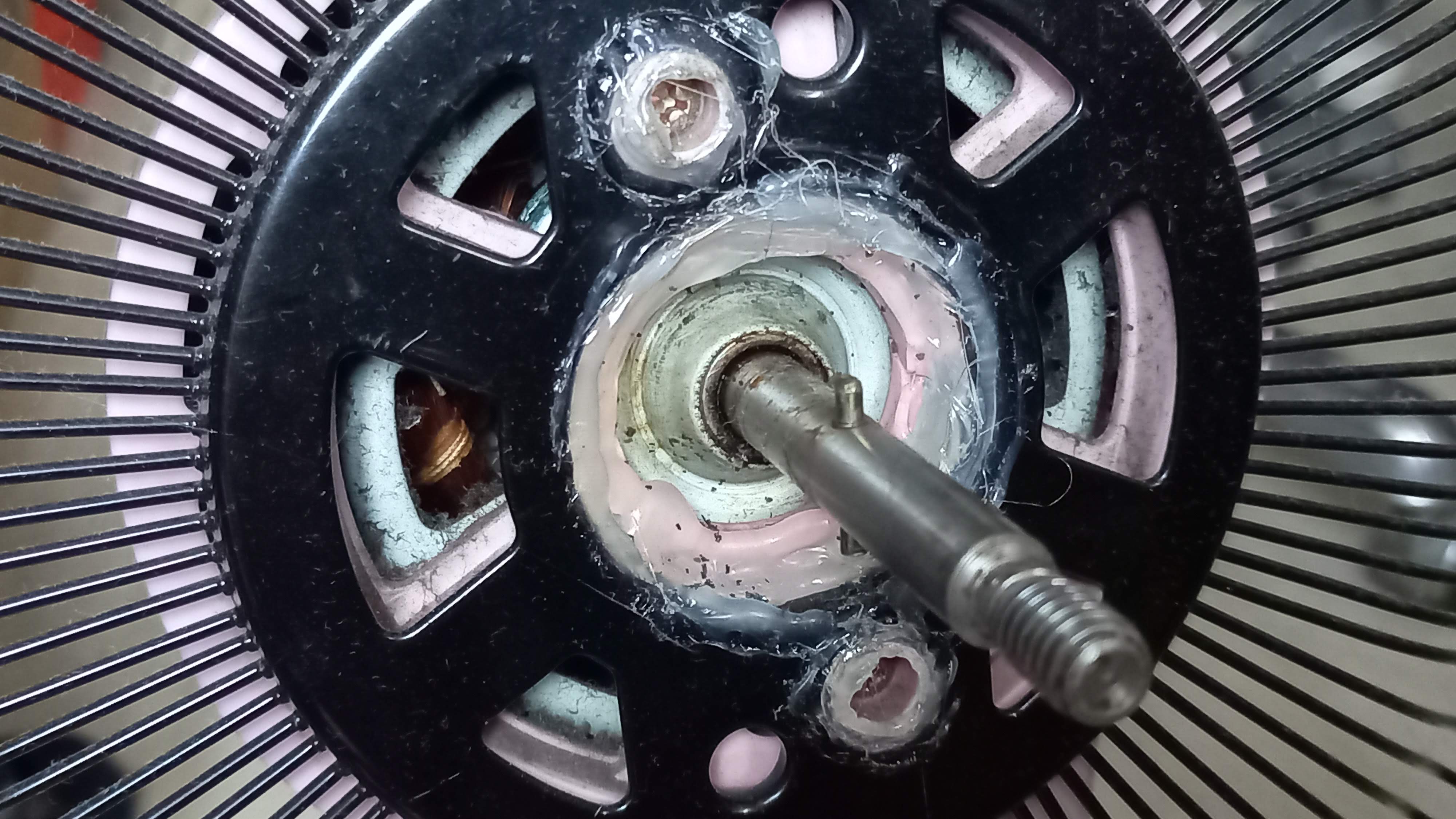 선풍기를 눕히고 모터축을 손으로 돌려줍니다