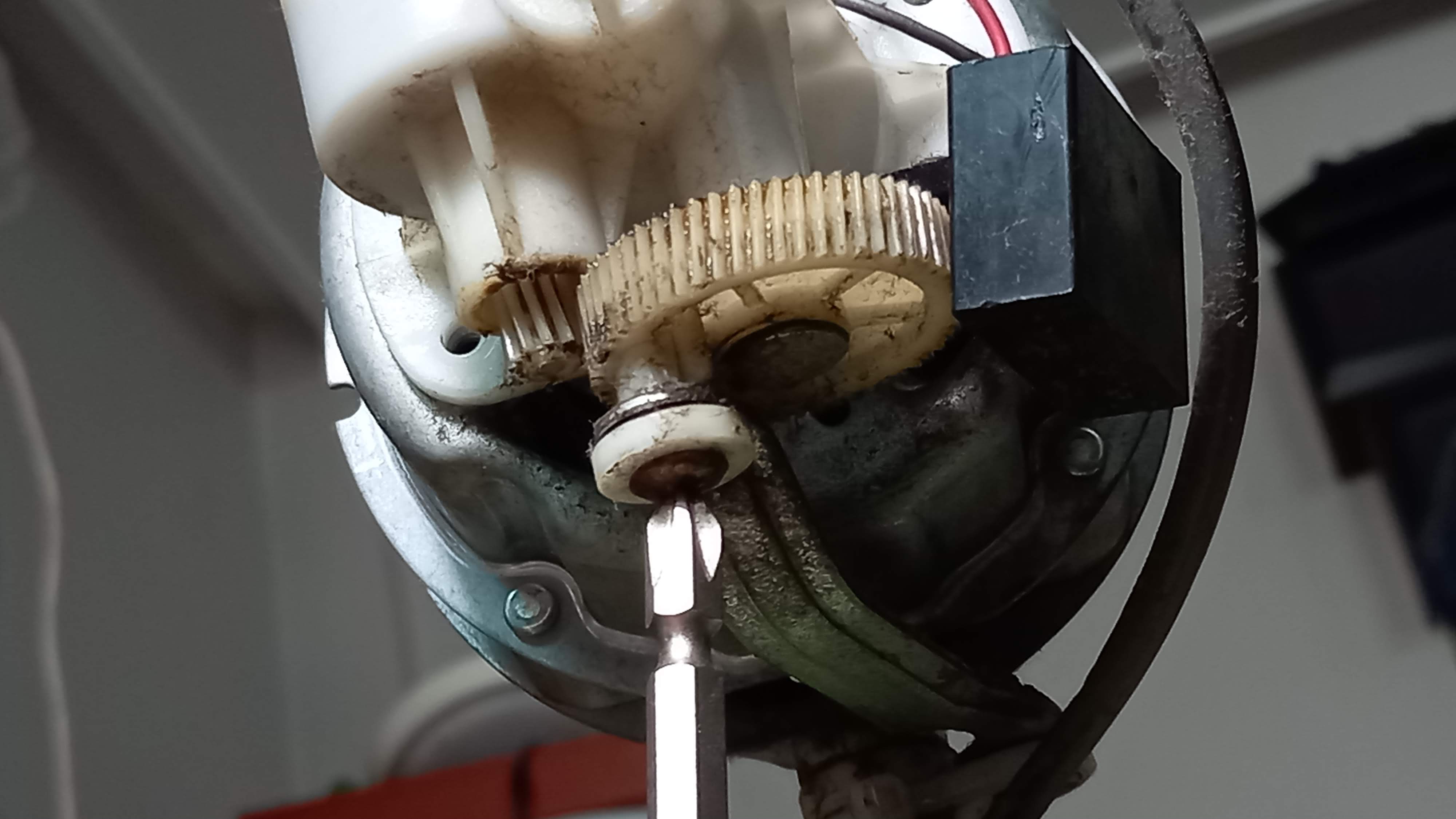회전 기구물을 모터에서 분리하기 위해 나사를 풀 때