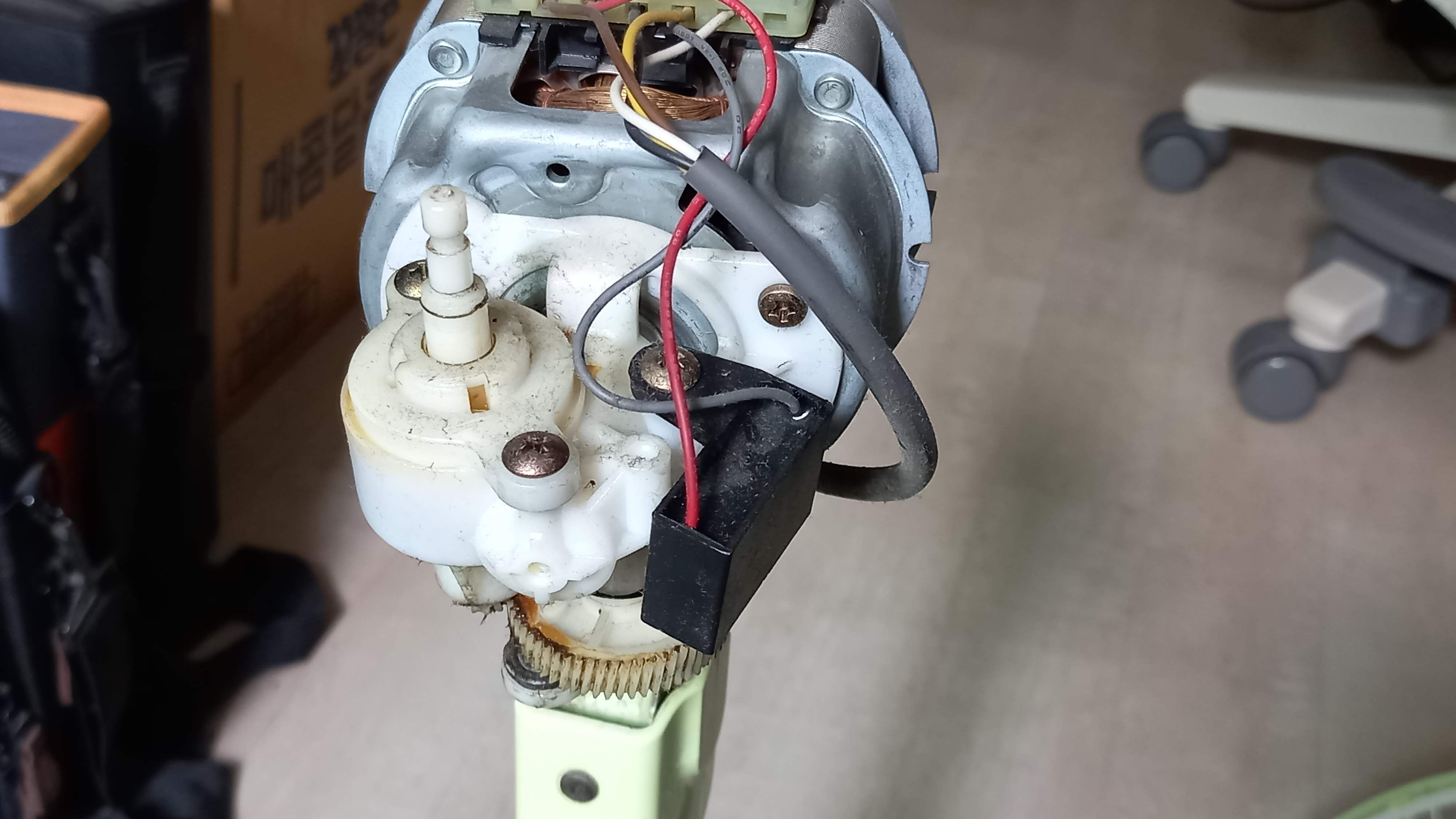 아래사진을 보면 연식이 오래되어 모터쪽 안전망 고정 플라스틱이 부식으로 부러져서