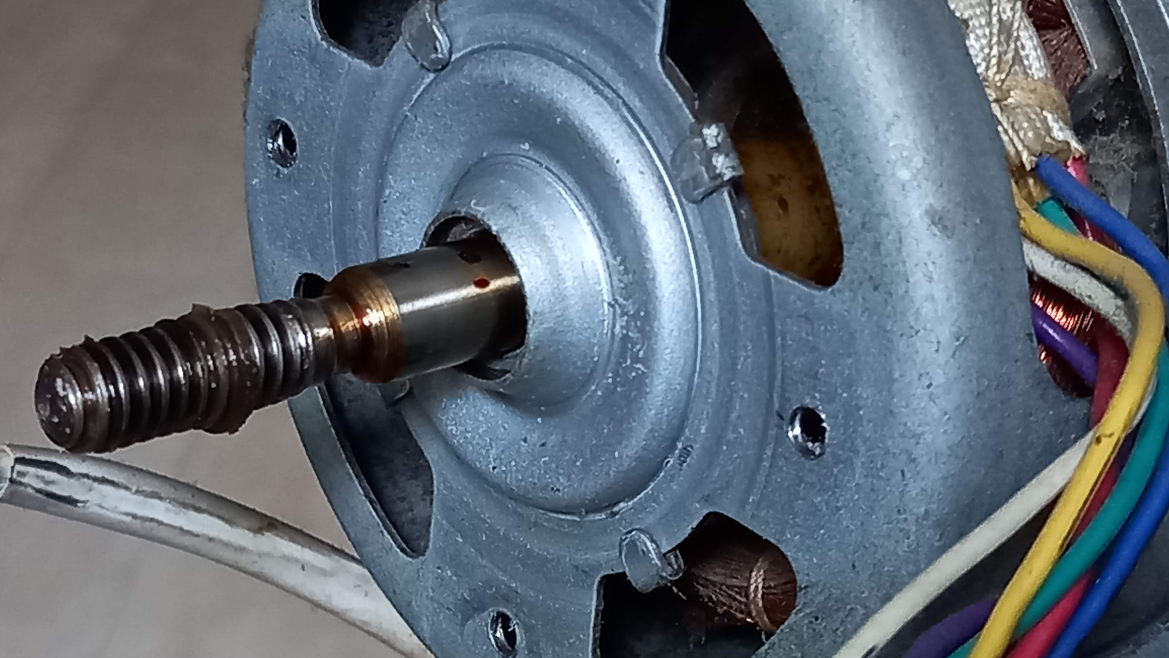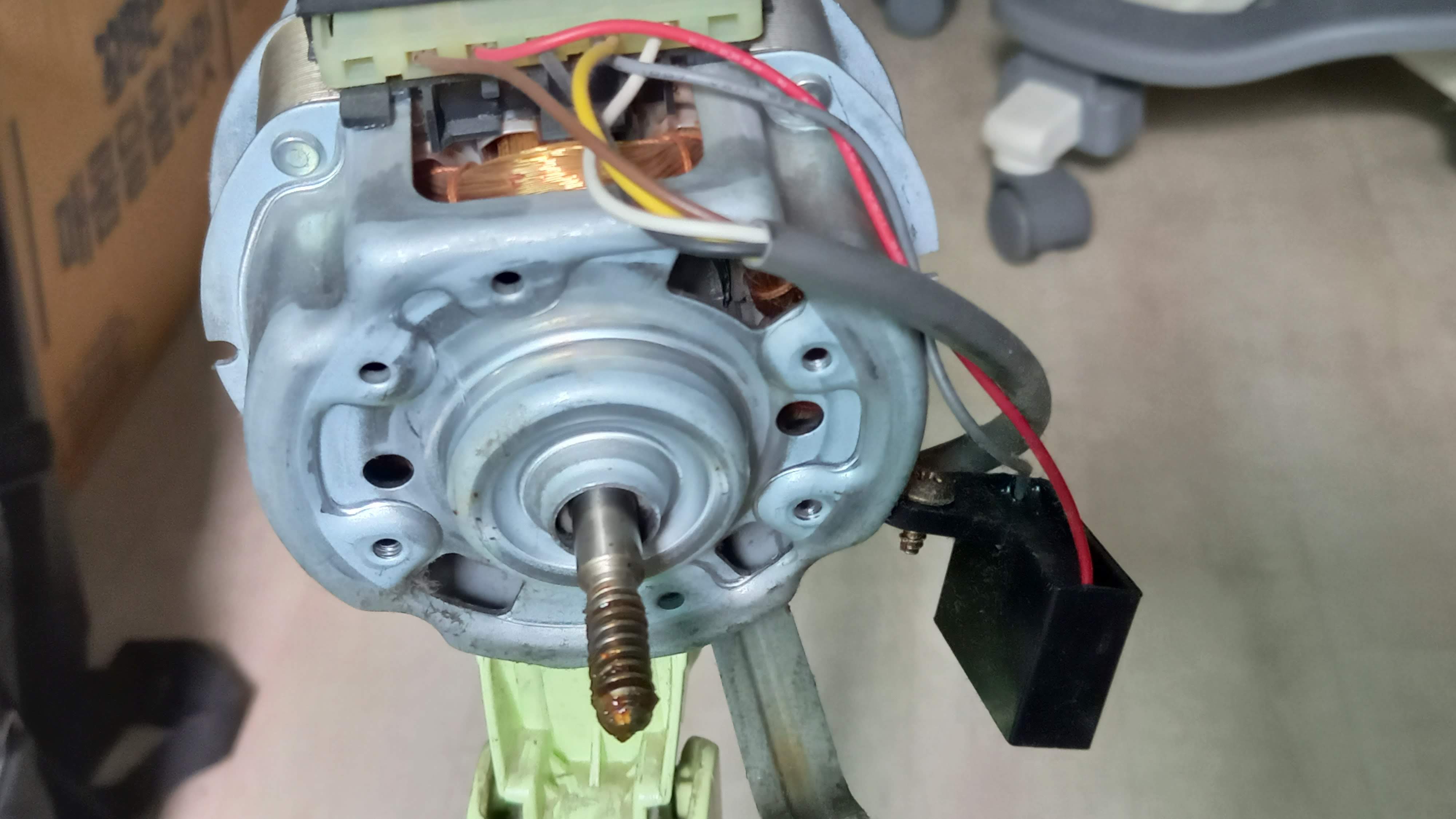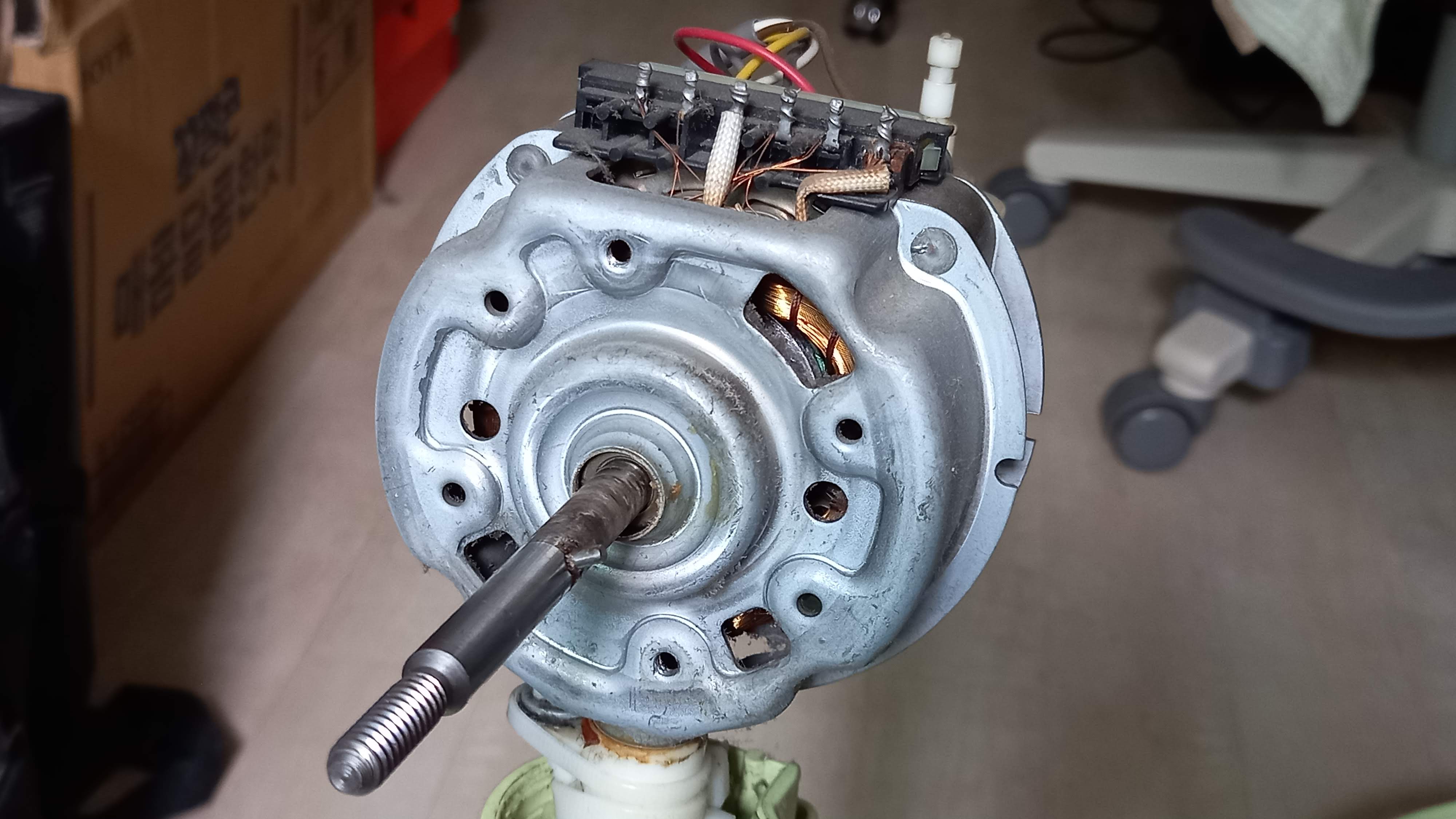 모터 커버가 분리되어 모터의 뒤쪽이 보입니다