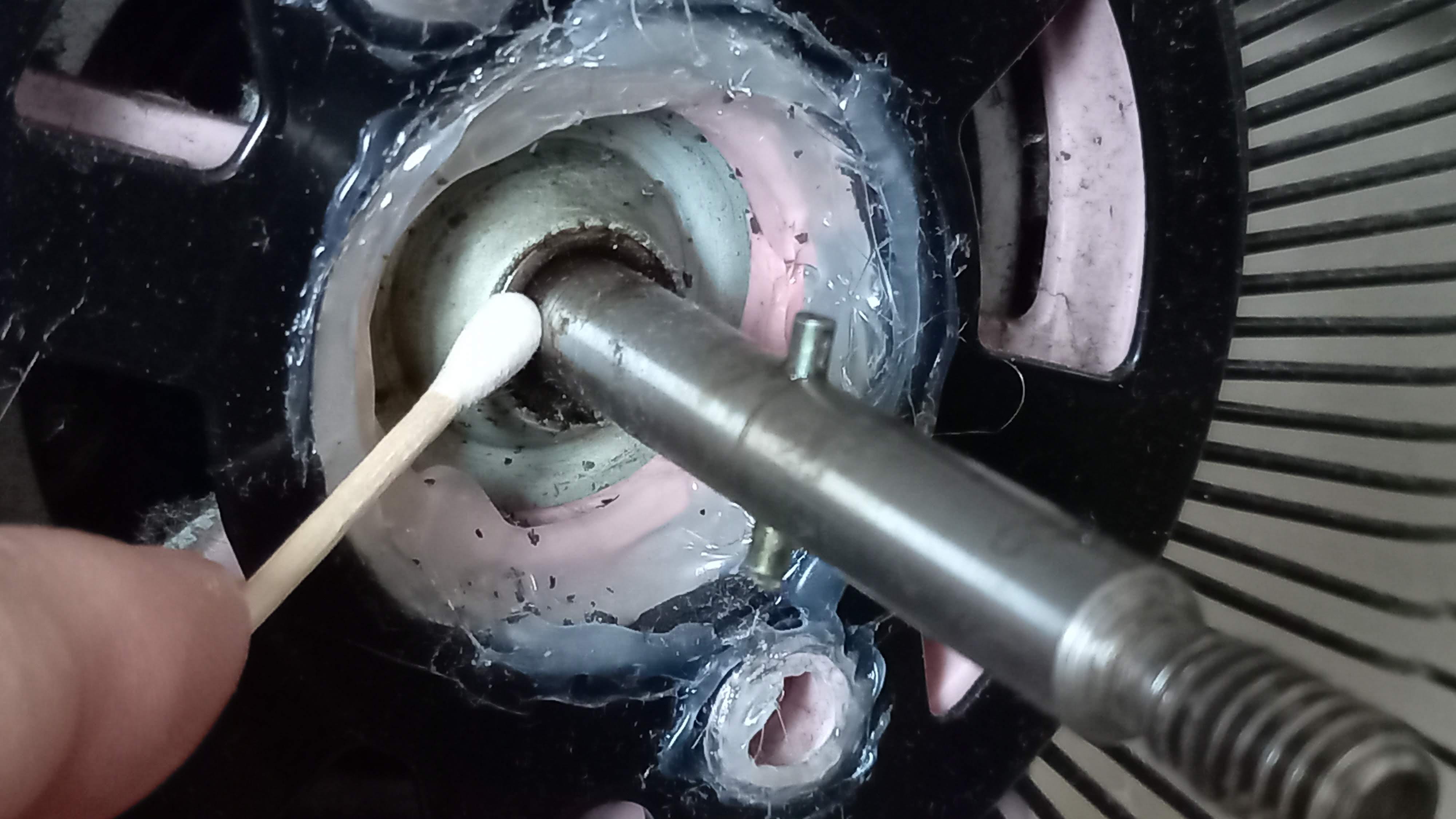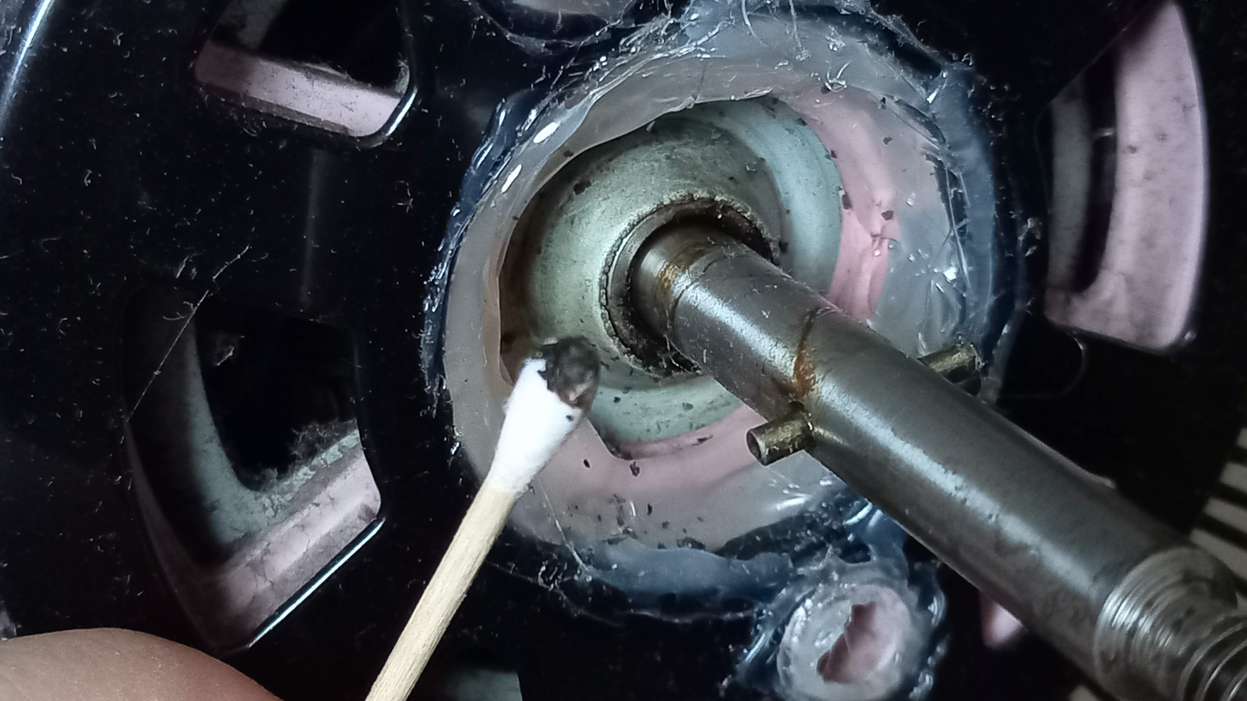 면봉을 대고 모터축을 손으로 돌리면서 최대한 닦아줍니다