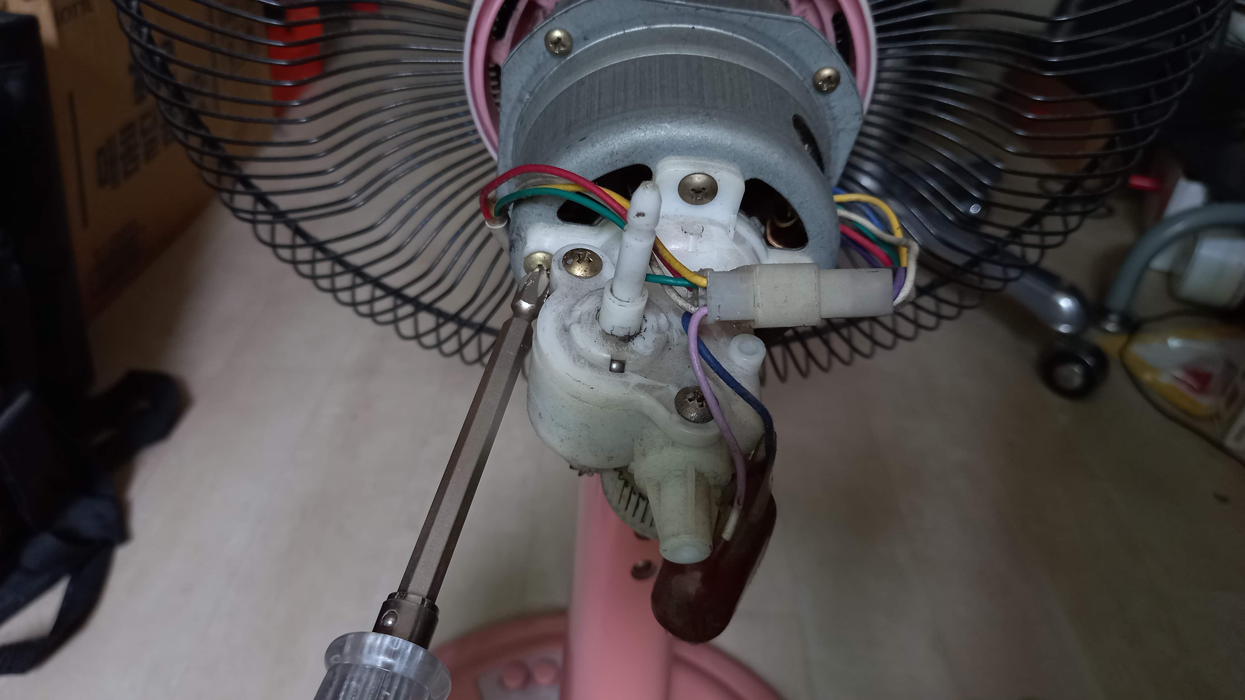 안전망과 날개를 분해하여 모터축이 보이게 합니다