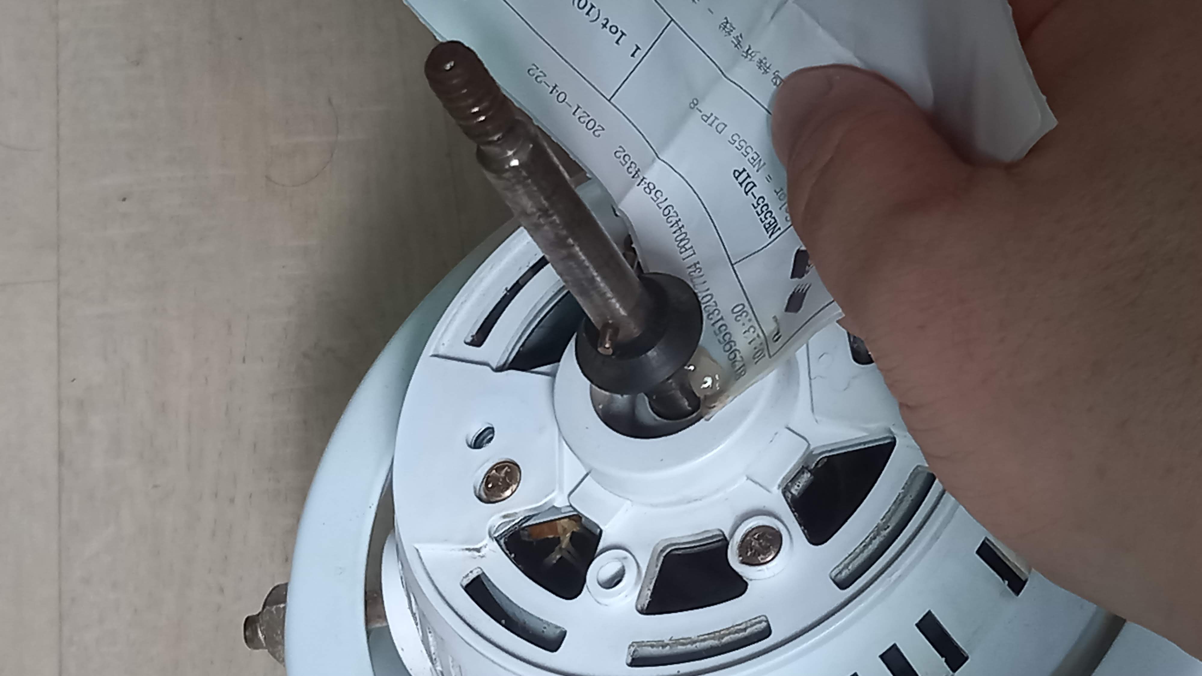 코팅된 종이를 사용하여 구리스를 모터축 안쪽으로 밀어넣어 줍니다