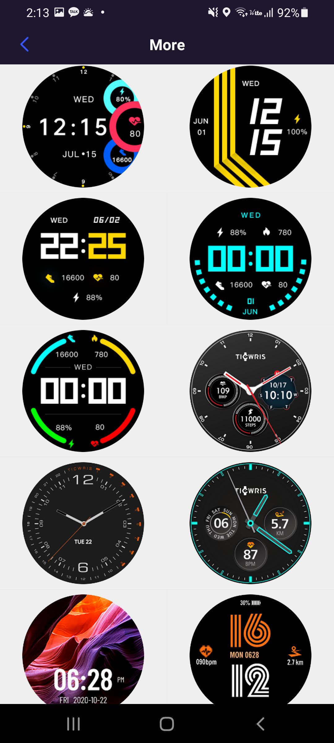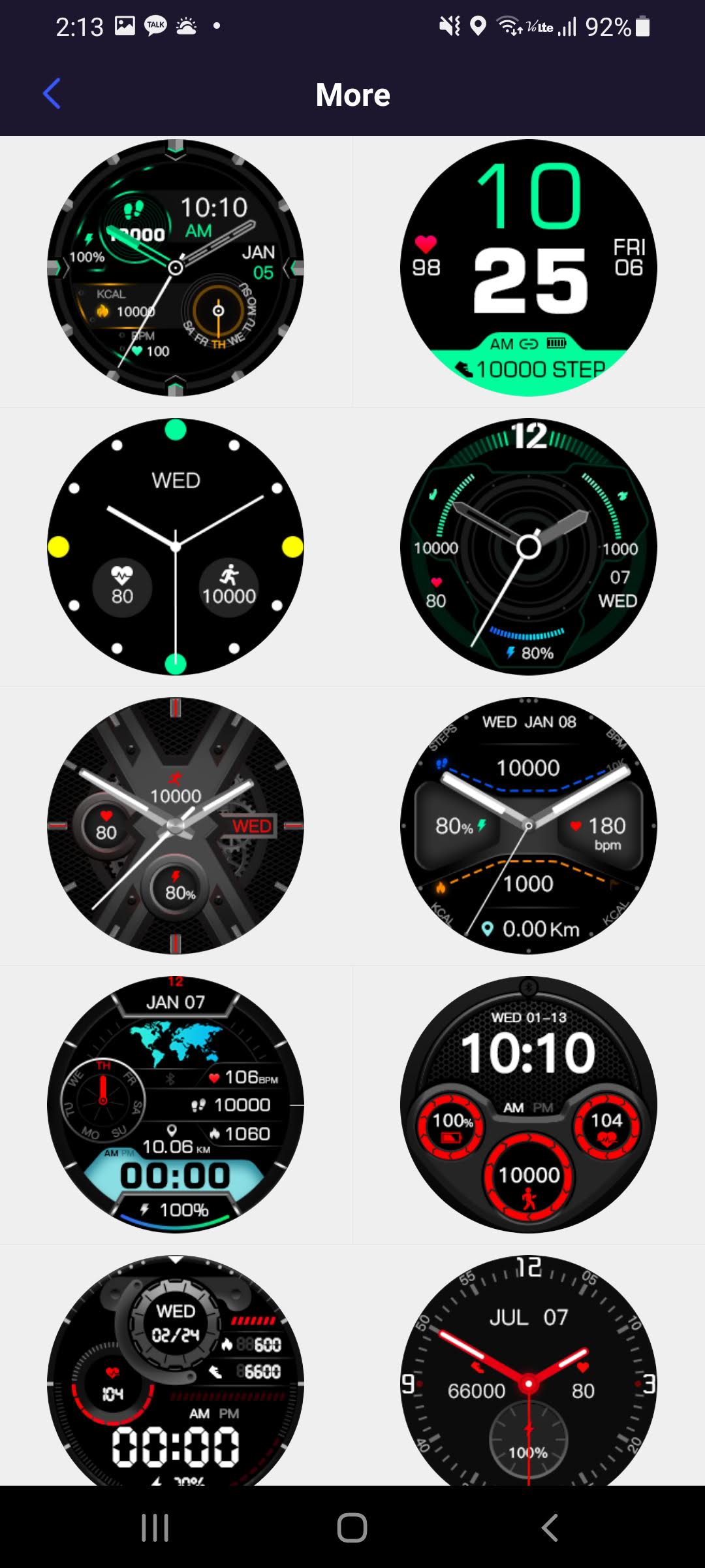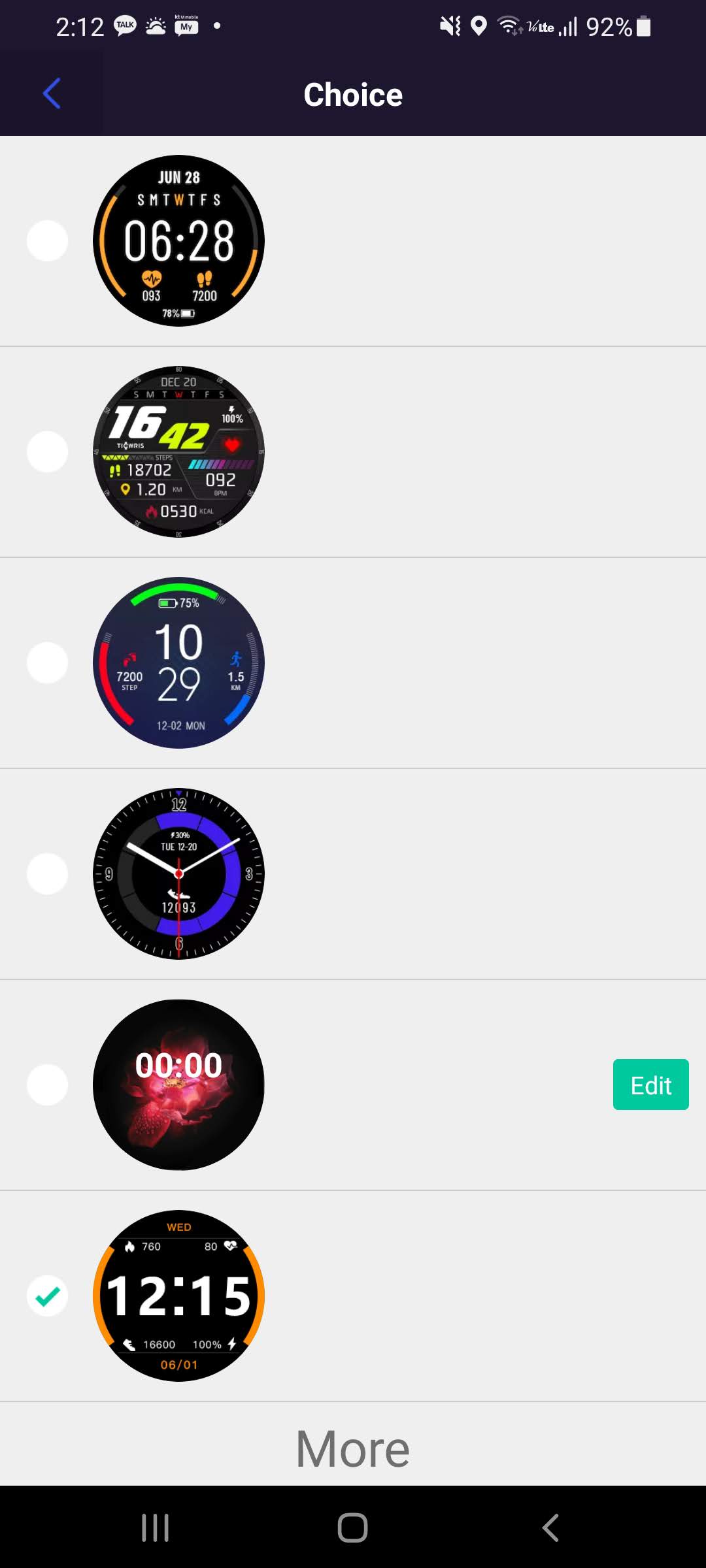 하지만 며칠전부터 YFit 어플의 Watch faces에서 More를 누르면 58개의 화면을 추가로 선택할 수 있게 되어