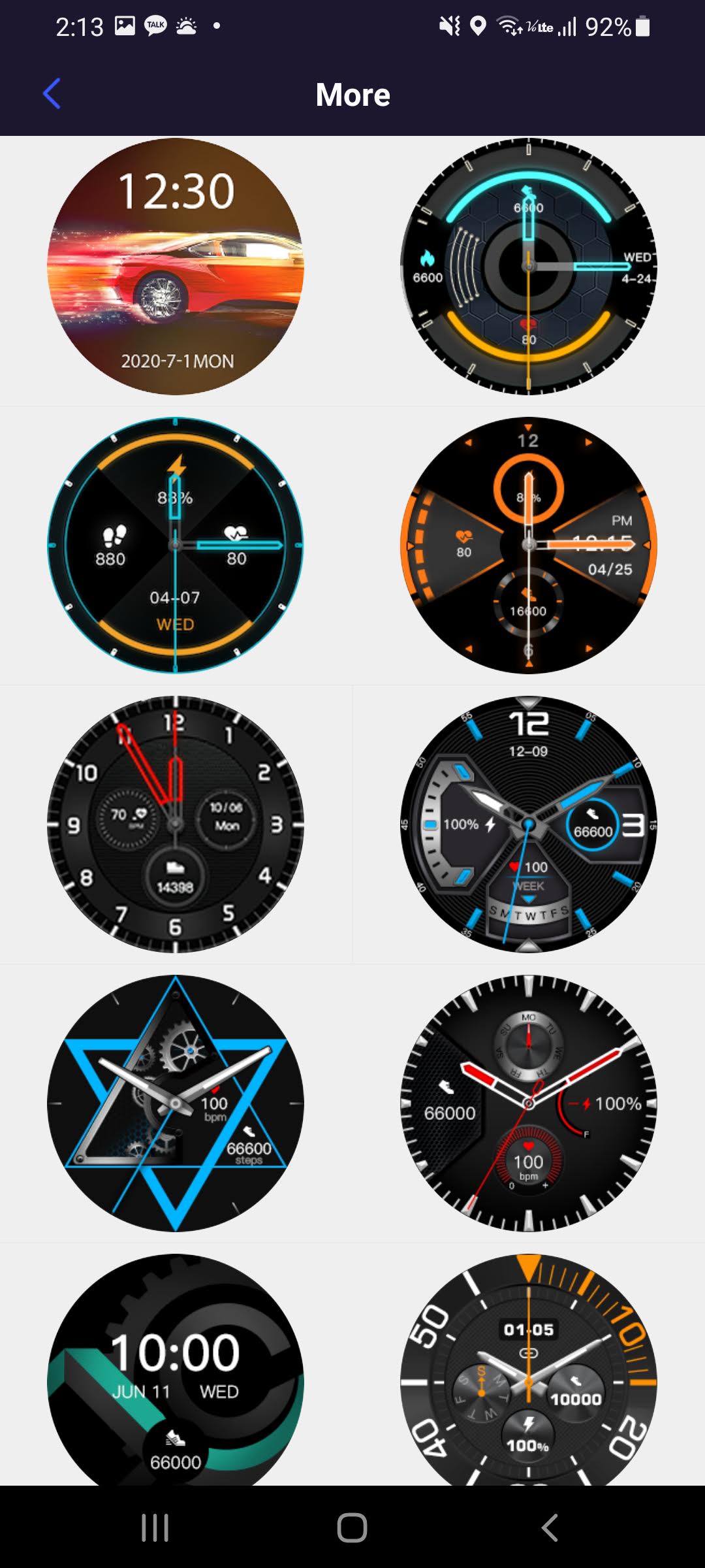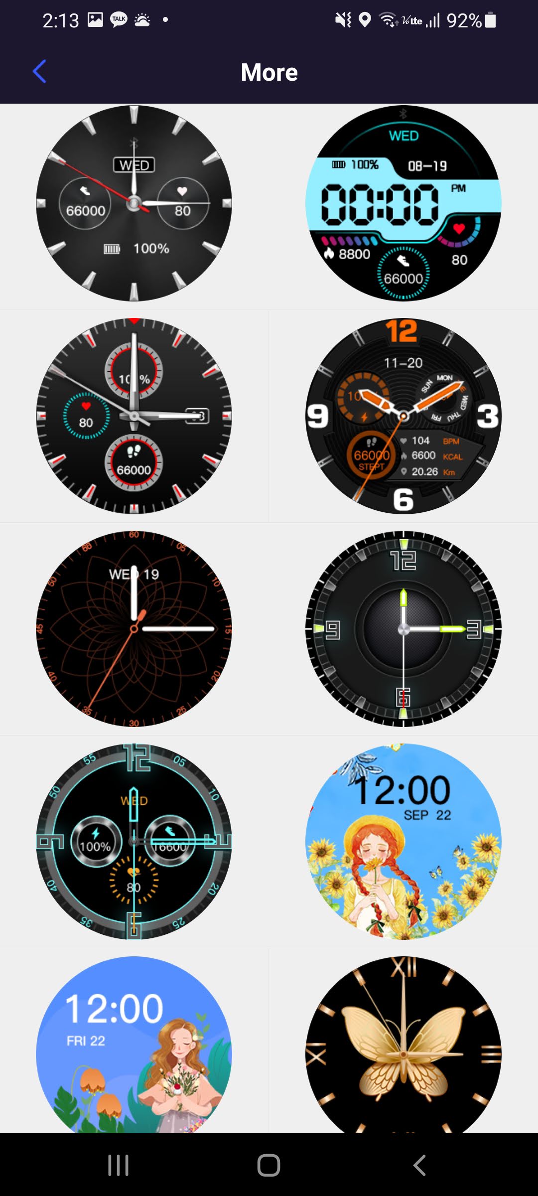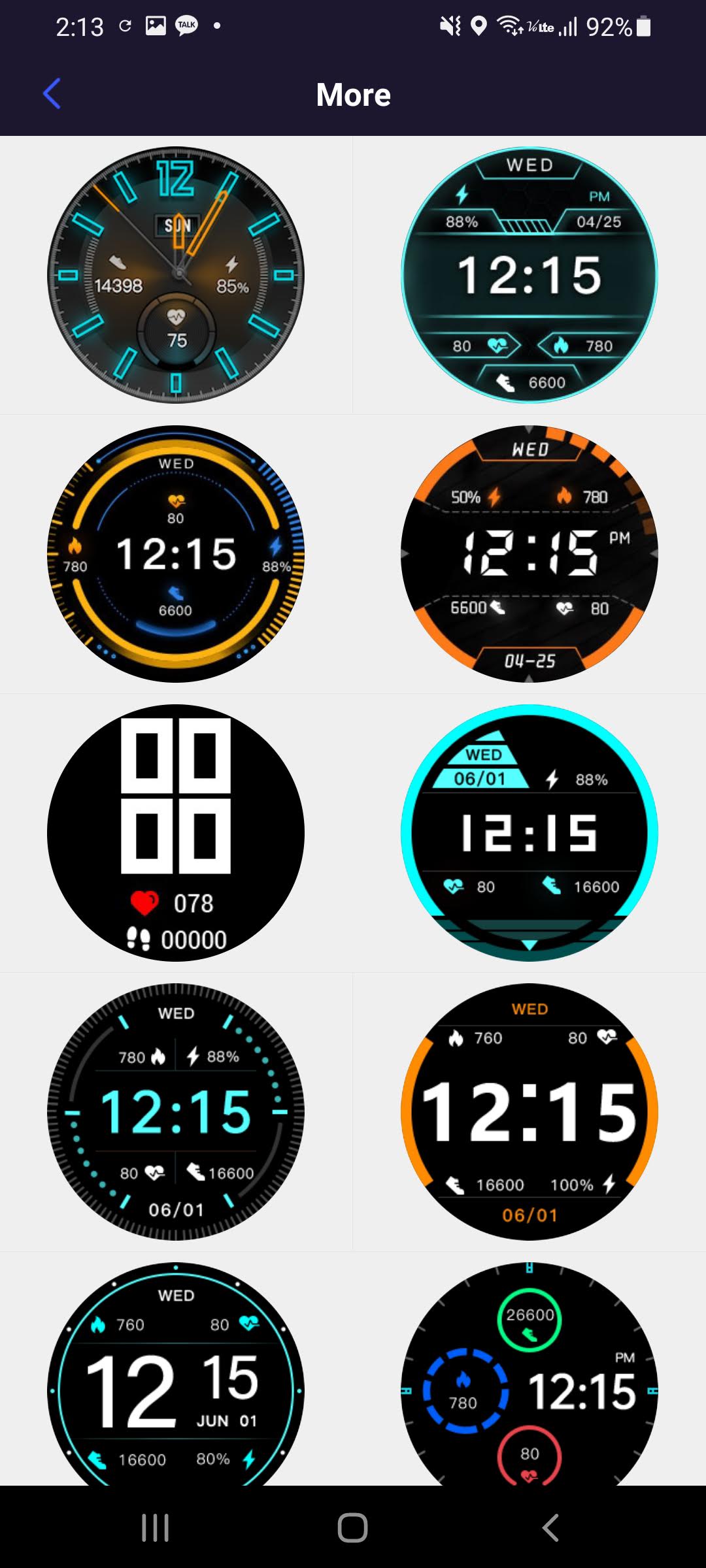 하지만 며칠전부터 YFit 어플의 Watch faces에서 More를 누르면 58개의 화면을 추가로 선택할 수 있게 되어