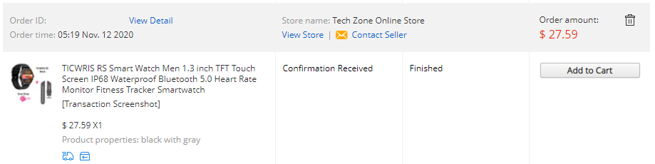 아래는 제가 구입했던 가격(27.59$)과 날짜(2020/11/12)입니다
