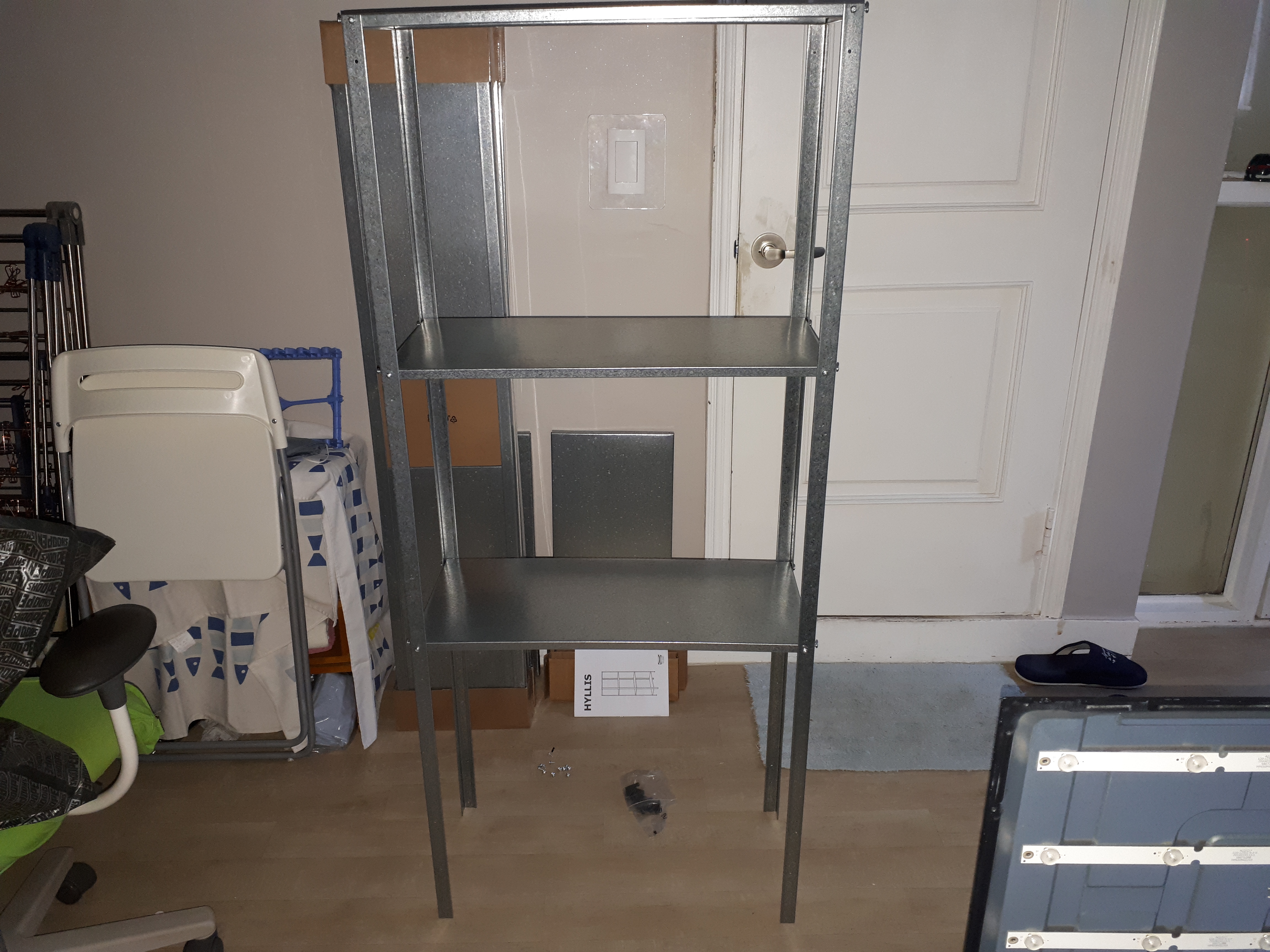 맨 아래층 선반을 달아봤더니 다리가 거의 휘어지지 않아서 쌓을수가 없습니다