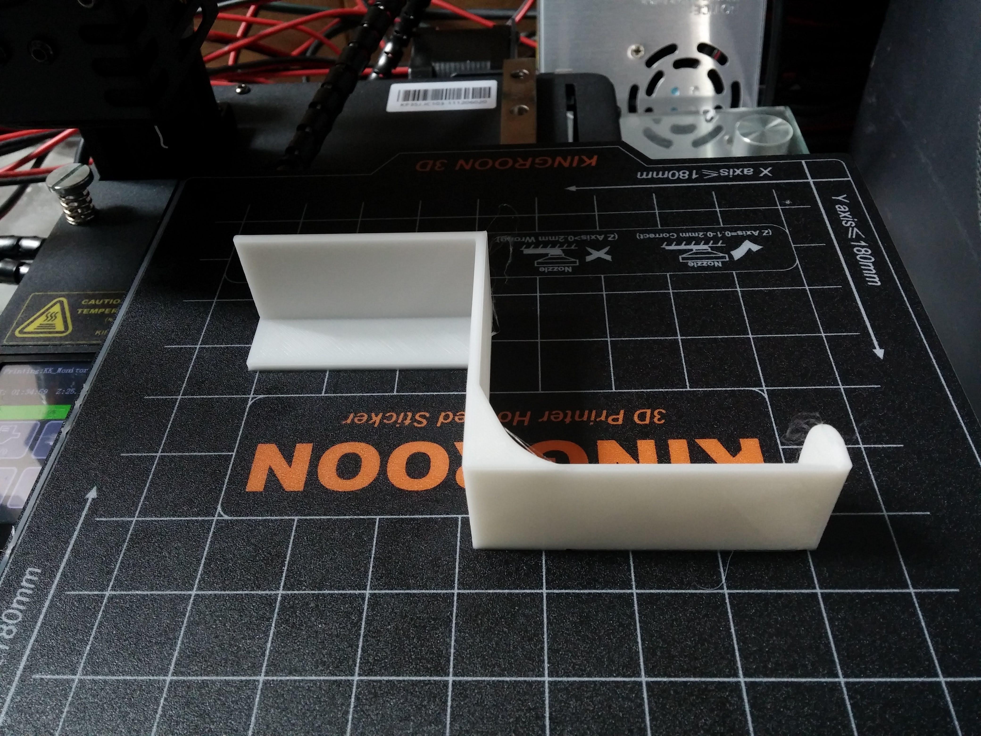 Simple Headphone Stand for 20mm thick monitors No glue or tape required Takes 2 hours to print Designed so headphones don't block monitor display when on stand Tree support used Update 29/12/2020 Added extra support to strengthen part.